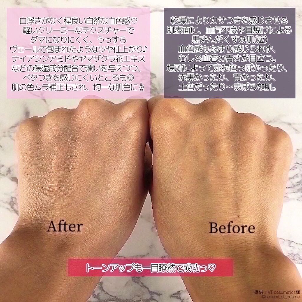 VTCICAサンプライマートーンアップクリームいつの日かに購入した下地手に乗せてみるとそんなにトーンアップしない?と思ったけど顔に乗せるとよく分かる!しっかりトーンアップします∗*゚テクスチャーは割とこっくりめ密着系だと思いました!日焼け止め...