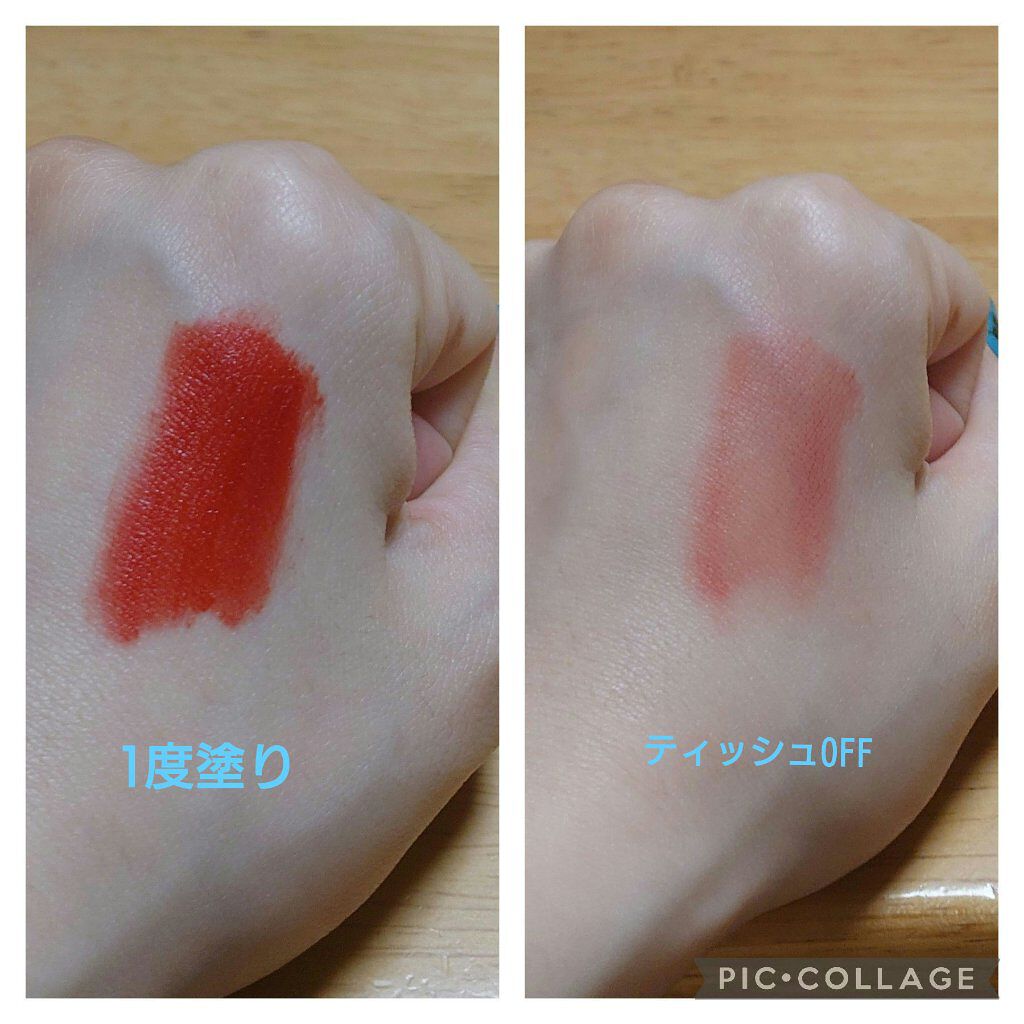 巷で言われてる通り、ティントじゃないの?ってくらいの色持ちでした👏 かなり滑らかでするする塗れて、思ったより透け感がある色の付き方でした🤔 保湿感も高くて、リップで荒れることの多い私でも大丈夫でした🙌 excelのほうがマットまでいきませんが、高発色で透け感はあまりなく、KATEは透け感があって保湿力高かったです🤗 高発色を求めるならexcelで、KATEもなかなかの発色ですが、色持ちと保湿重視ならKATEって感じの違いかなって個人的に思います👌 お風呂に入って出ても、ティントじゃないのに何故か残ってました!! なのでお泊まりとか、血色なくて困るって方とか、すっぴんメイクしたいからその前の日中の仕込み(?)とかにも使えるかと思いました🤭