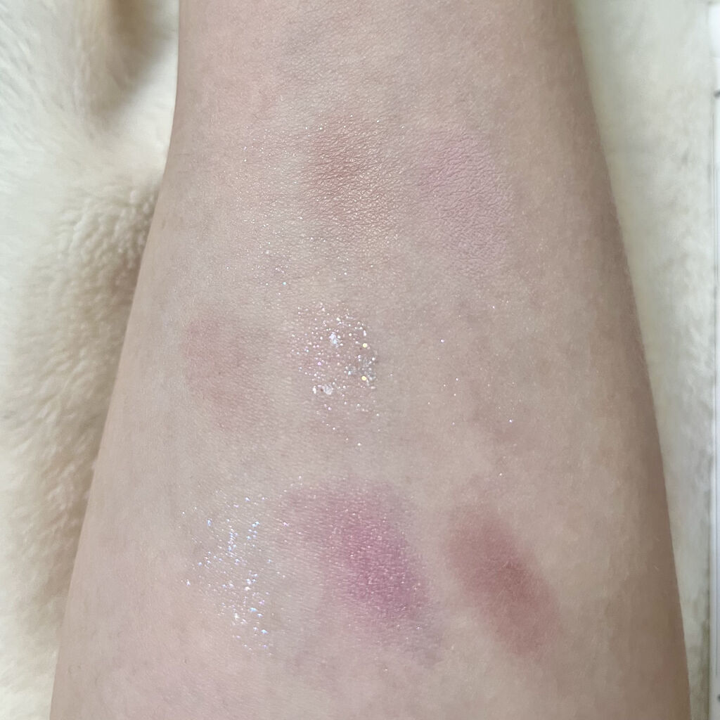 好きな色味すぎて、絶対買うって決めてたやつ!💜***くすみパープルブラウン+パープルラメ🔮ラメ以外の3色はしっかりマットだからラメの量を調節することでいろんな使い方ができて、お仕事用にも良さそう!👩🏻⚕️発色はそんなに良くないからしっかり指...