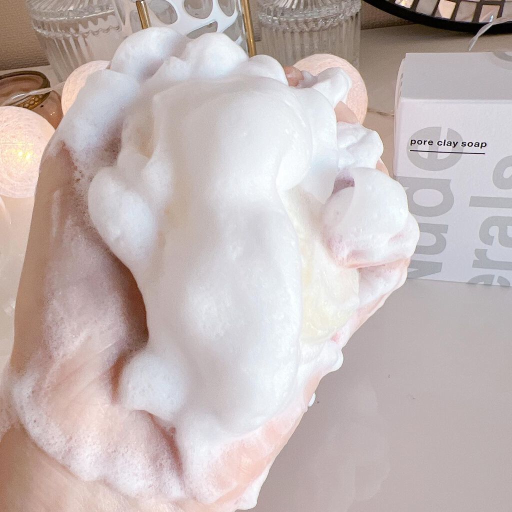 - 転がすだけでもくもくの泡立ち。毛穴汚れを吸着オフするミネラルクレイ配合のソープ ぬらした手で転がすだけですぐに泡立ち、もっちり弾力泡が作れる洗顔ソープ。多彩なミネラルを含むクレイ(ベントナイト)を配合し、毛穴汚れや古い角質を吸着。肌を整えるビタミンC 誘導体やヨモギエキスも配合し、汚れをすっきり落としながらも洗い上がりはカサつきにくい枠練り製法です。ミネラルメイクなら石けん洗顔で気持ちよく落とすことができます。