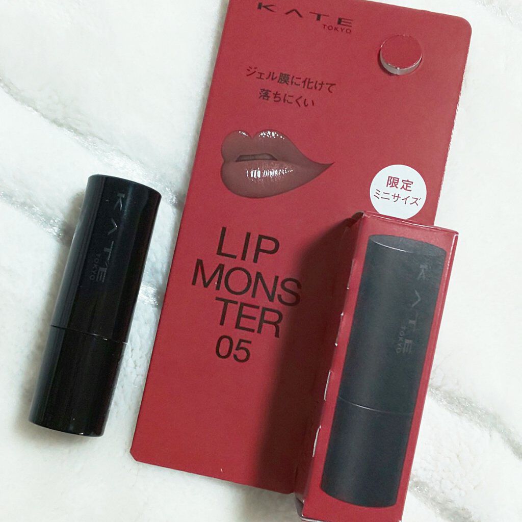 KATEケイトリップモンスター05 ダークフィグくすみが強いブラウンレッドカラー。でも、透け感もあって可愛い。塗ってしばらく放置するとティッシュオフしてもつかないし色持ちもよくてホント助かる!イエベもブルベも使いやすいニュートラルカラーじゃな...