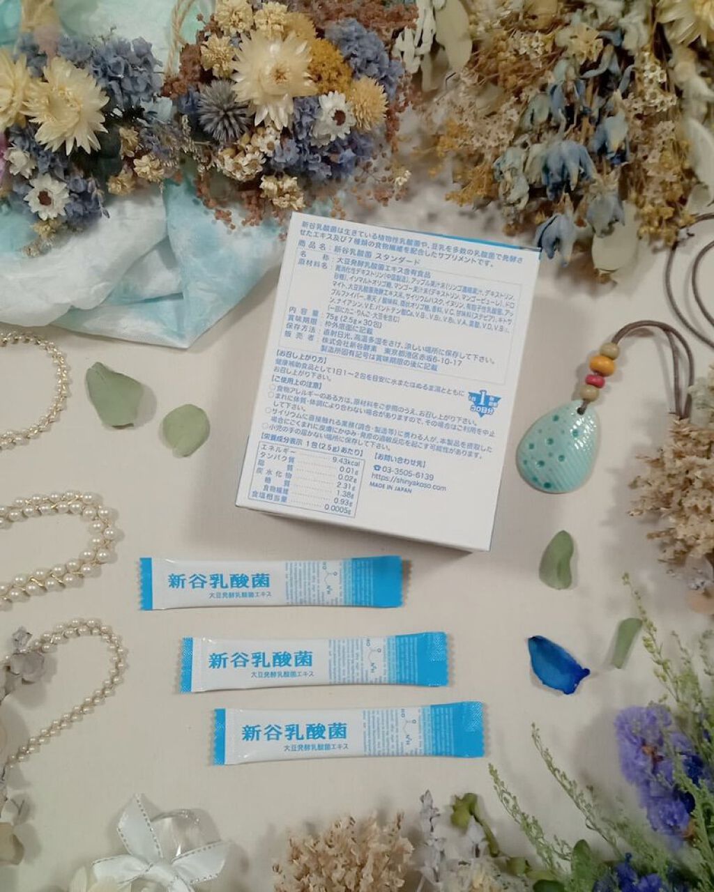 プロバイオティクス⇨人に良い作用をもたらす生きている菌🦠 一包に約2億個の植物性乳酸菌配合。 乳酸菌が生み出した有用成分⇨バイオジェニックス 大豆発酵乳酸菌エキス・・・乳酸菌が生み出す成分は健康にとってとても重要。ただし善玉菌が正しく働いているからこそ生み出される成分。新谷乳酸菌では、乳酸菌代謝物とされる成分をダイレクトに摂取できます 自然由来7種の食物繊維配合。 摂取することで自分の善玉菌とともに善玉菌の働きをサポートします。