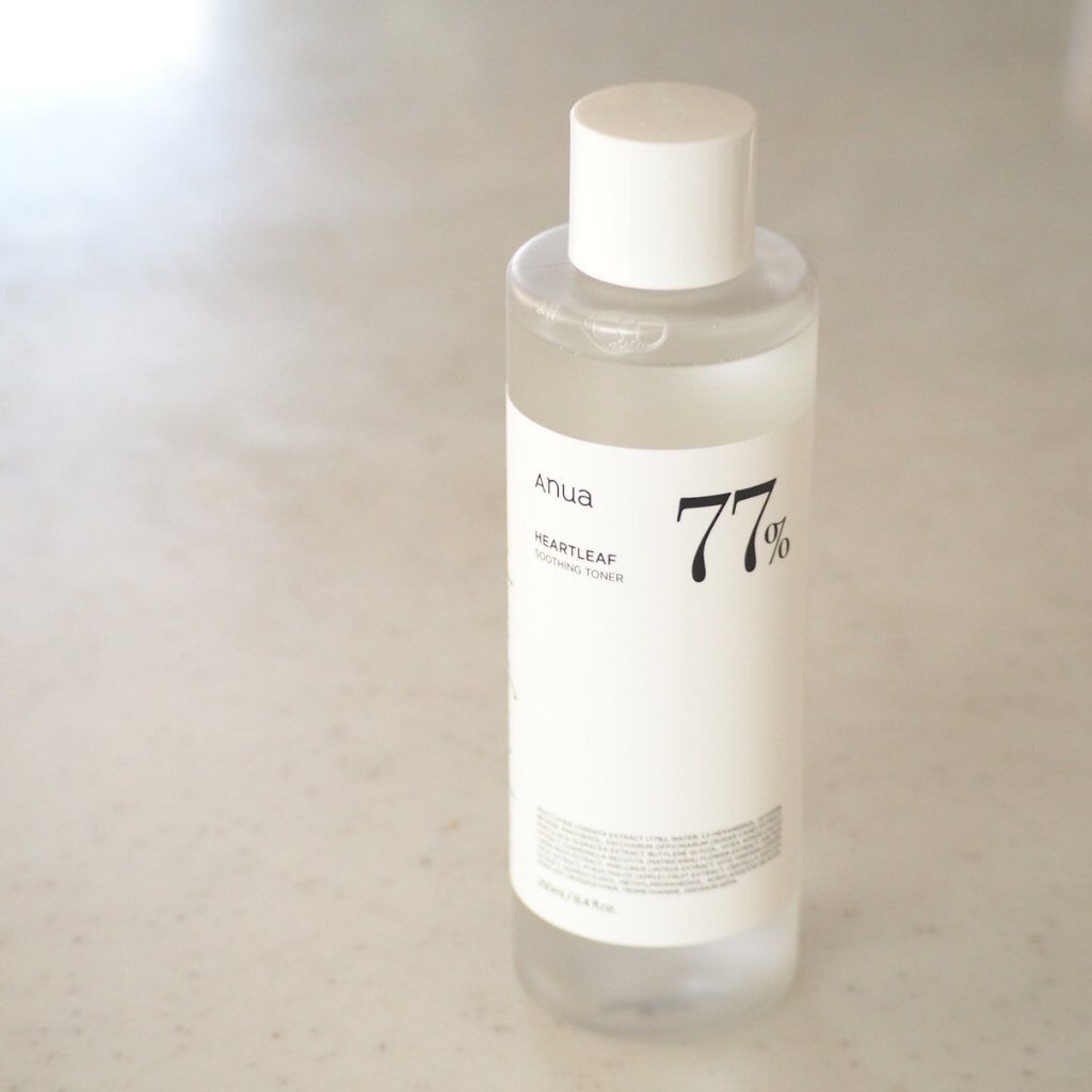 ドクダミエキスを精製水の代わりに77%入れてトラブル鎮静に卓越したトナー。 皮膚刺激テストの結果、「無刺激」判定で敏感肌の方にも安心して使用できます。 水っぽくサラサラとしたテクスチャーで、肌馴染みが良くさっぱりとしています!! 手に出して化粧水として使用したり、コットンにたっぷり染み込ませてパックとして使用するのもおすすめです!😊 ドクダミ成分配合で、肌荒れ時にも使用できて刺激を感じることもなかったです! Anuaのアンプルと一緒に使用すると、より保湿してくれて、お肌を鎮静してくれます!😊