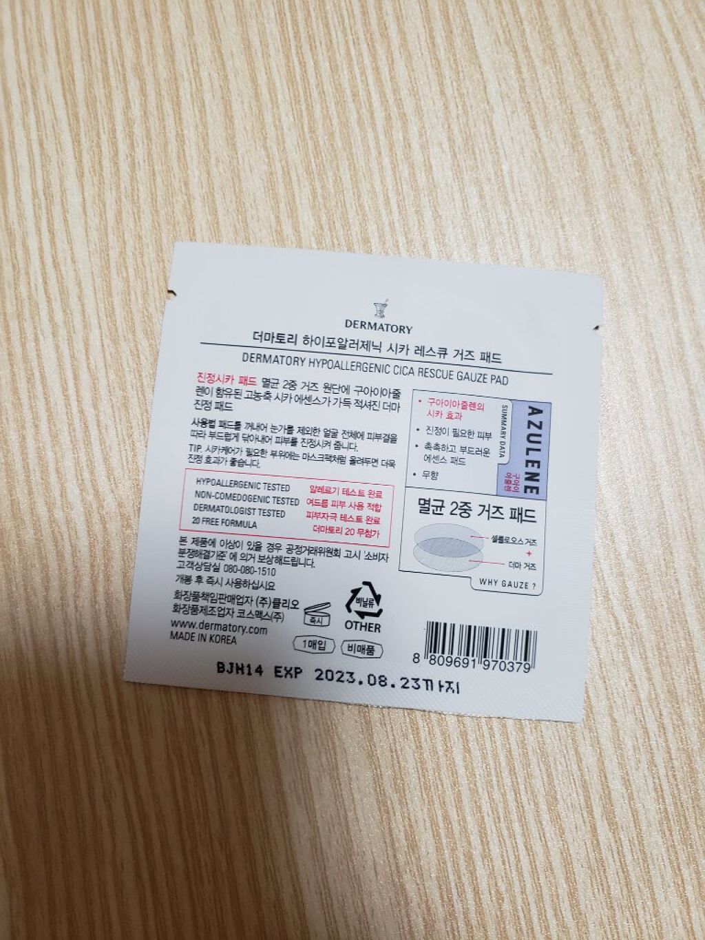 商品詳細情報Dermatory ハイポアレジェニック シカ レスキューガーゼパッド