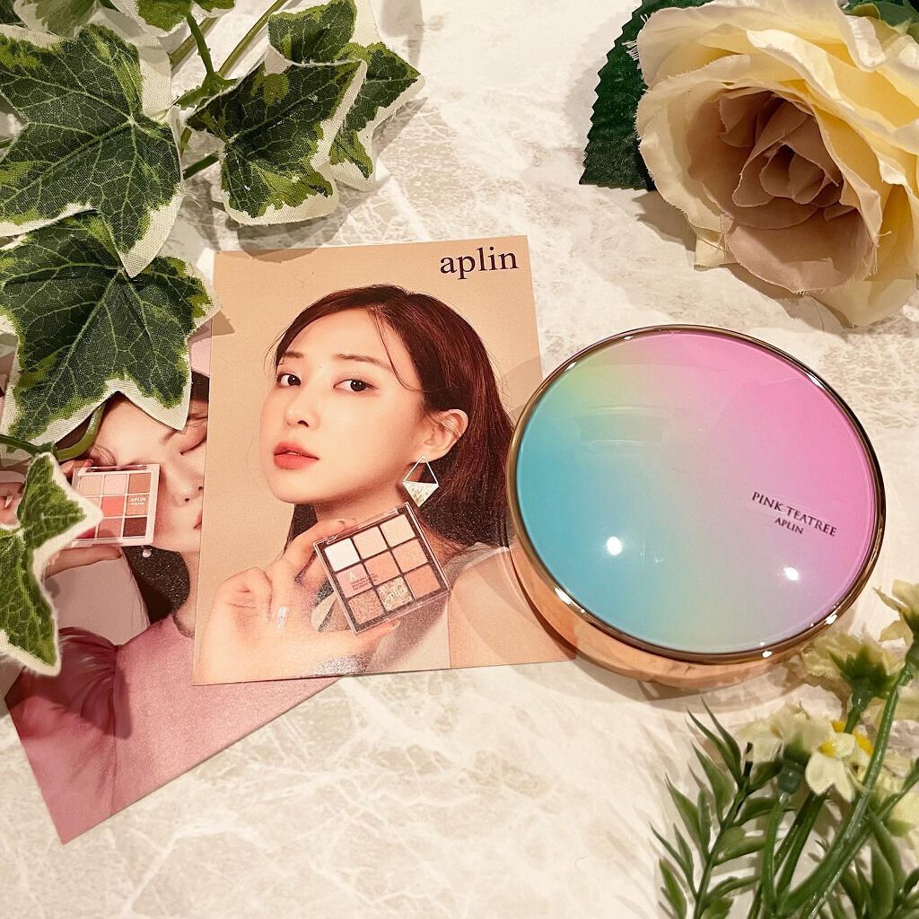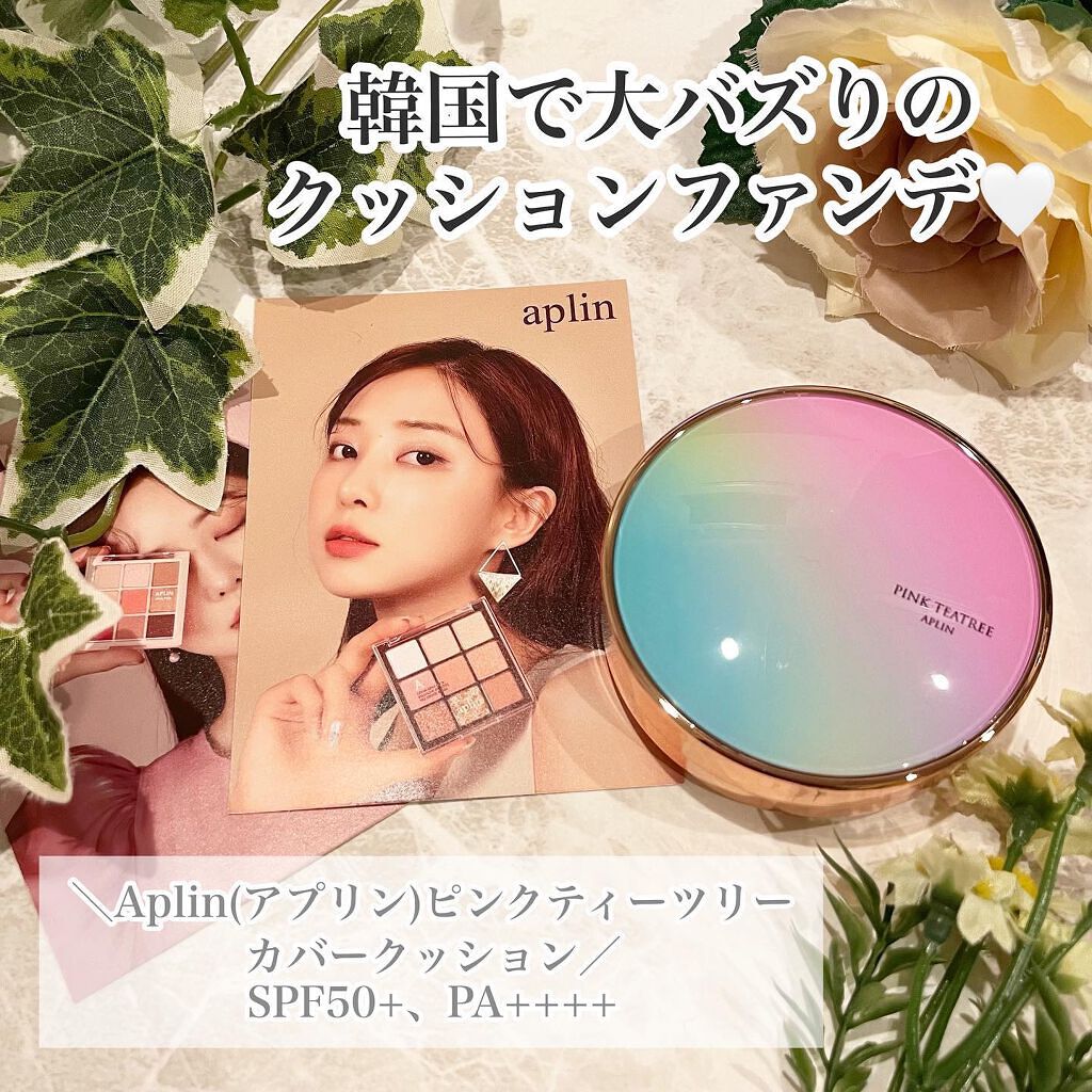APLIN ピンクティーツリーカバークッション 21号ライトベージュ 2,490円(税込) 少量でよく伸びてハイカバー! 赤みやくすみをしっかりカバ一できるのに、厚塗り感のないなめらかな仕上がり♡ ハイカバーなのにナチュラルなツヤ感とサラッとしつつ、乾燥崩れしにくい仕上がりに感動します!!