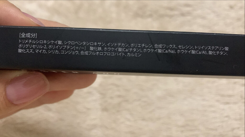 - <01 MIDNIGHT BLACK> トリメチルシロキシケイ酸、シクロペンタシロキサン、酸化鉄、ホウケイ酸(Ca/チタン),イソドデカン、ポリエチレン、合成ワックス、セレシン,トリイソステアリン酸ポリグリセリル-2、酸化チタン、ポリイソブテン、酸化スズ <02 CHIC NAVY> トリメチルシロキシケイ酸、シクロペンタシロキサン、酸化鉄、イソドデカン,ポリエチレン、酸化チタン、マイカ、合成ワックス,ホウケイ酸(Ca/Na)、セレシン、シリカ,トリイソステアリン酸ポリグリセリル-2、ポリイソブテン、コンジョウ <03 CINNAMON MOCHA> トリメチルシロキシケイ酸、シクロペンタシロキサン、イソドデカン、マイカ,酸化鉄、ポリエチレン、合成ワックス、酸化チタン、セレシン、ホウケイ酸(Ca/チタン),ホウケイ酸(Ca/Al)、トリイソステアリン酸ポリグリセリル-2、ポリイソブテン、シリカ、酸化スズ <04 GLAM LATTE> トリメチルシロキシケイ酸、シクロペンタシロキサン、マイカ、イソドデカン,ポリエチレン、酸化鉄、合成フルオロフロゴパイト、合成ワックス,ホウケイ酸(Ca/Al)、酸化チタン、セレシン,トリイソステアリン酸ポリグリセリル-2、シリカ、ポリイソブテン、酸化スズ <05 CHAMPAGNE GOLD> トリメチルシロキシケイ酸、シクロペンタシロキサン、マイカ、酸化チタン,イソドデカン、ポリエチレン、合成フルオロフロゴパイト、合成ワックス,セレシン、トリイソステアリン酸ポリグリセリル-2、酸化鉄、ポリイソブテン、カルミン <06 BABY PEACH> トリメチルシロキシケイ酸、シクロペンタシロキサン、マイカ、酸化チタン,イソドデカン、ポリエチレン、合成フルオロフロゴパイト、合成ワックス,セレシン、トリイソステアリン酸ポリグリセリル-2、酸化鉄、ポリイソブテン、カルミン <07 MATTE BLACK> 酸化鉄 (CI 77499)、トリメチルシロキシケイ酸、シクロペンタシロキサン、イソドデカン、ポリエチレン、合成ワックス、セレシン、マイカ (CI 77019)、キャンデリラロウ、シクロペンタシロキサン(アクリレーツ/メタクリル酸ポリトリメチルシロキシ)コポリマー、ポリイソブテン、ポリヒドロキシステアリン酸、レシチン、パルミチン酸エチルヘキシル、イソステアリン酸、ミリスチン酸イソプロピル、酢酸トコフェロール、カプリリルグリコール、ジメチコン、ポリリシノレイン酸ポリグリセリル-3 <08 MATTE BROWN> トリメチルシロキシケイ酸、シクロペンタシロキサン、酸化鉄 (CI 77499)、イソドデカン、ポリエチレン、酸化鉄 (CI 77491)、合成ワックス、酸化鉄 (CI 77492)、セレシン、マイカ (CI 77019)、キャンデリラロウ、シクロペンタシロキサン(アクリレーツ/メタクリル酸ポリトリメチルシロキシ)コポリマー、 ポリイソブテン、ポリヒドロキシステアリン酸、レシチン、パルミチン酸エチルヘキシル、イソステアリン酸、ミリスチン酸イソプロピル、酢酸トコフェロール、カプリリルグリコール、ジメチコン、ポリリシノレイン酸ポリグリセリル-3 <09 CHOCO BROWN> トリメチルシロキシケイ酸、シクロペンタシロキサン、酸化鉄 (CI 77491)、イソドデカン、マイカ (CI 77019)、ポリエチレン、酸化鉄 (CI 77499)、酸化鉄 (CI 77492)、合成ワックス、セレシン、酸化チタン (CI 77891)、キャンデリラロウ、合成フルオロフロゴパイト、ポリイソブテン、赤202 (CI 15850:1)、ポリヒドロキシステアリン酸、レシチン、パルミチン酸エチルヘキシル、イソステアリン酸、ミリスチン酸イソプロピル、ジメチコン、酢酸トコフェロール、カプリリルグリコール、ポリリシノレイン酸ポリグリセリル-3 <10 DARK ROSE> トリメチルシロキシケイ酸、シクロペンタシロキサン、イソドデカン、酸化鉄 (CI 77491)、マイカ (CI 77019)、ポリエチレン、ホウケイ酸(Ca/チタン)、合成ワックス、酸化鉄 (CI 77499)、酸化チタン (CI 77891)、セレシン、酸化鉄 (CI 77492)、キャンデリラロウ、赤202 (CI 15850:1)、酸化スズ (CI 77861)、ポリイソブテン、シクロペンタシロキサン(アクリレーツ/メタクリル酸ポリトリメチルシロキシ)コポリマー、ポリヒドロキシステアリン酸、レシチン、パルミチン酸エチルヘキシル、イソステアリン酸、ミリスチン酸イソプロピル、酢酸トコフェロール、カプリリルグリコール、ポリリシノレイン酸ポリグリセリル-3 <11 CORAL BRICK> トリメチルシロキシケイ酸、シクロペンタシロキサン、マイカ(CI 77019)、合成ワックス、メチルトリメチコン、合成フルオロフロゴパイト、酸化鉄(CI 77491)、セレシン、酸化チタン(CI 77891)、ホウケイ酸(Ca/Al)、キャンデリラロウ、ポリイソブテン、ポリヒドロキシステアリン酸、ジメチコン、レシチン、パルミチン酸エチルヘキシル、イソステアリン酸、ミリスチン酸イソプロピル、カプリル酸グリセリル、カプリリルグリコール、ポリリシノレイン酸ポリグリセリル-3、酸化スズ(CI 77861)