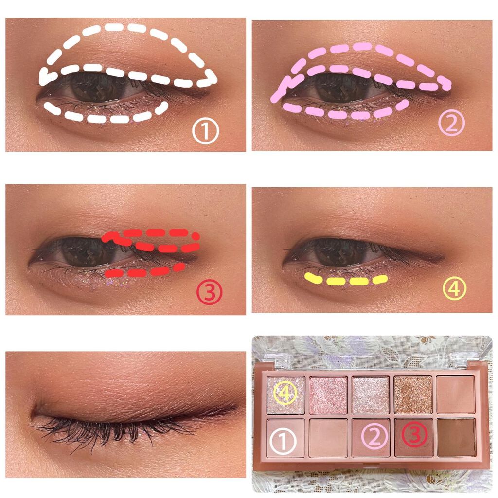 #今日のメイク今日の#デイリーメイク今日はピンクパレット🎨秋だからくすみ感強めのピンクを使ってメイクしてみた👀②のカラーがしっかりくすみピンクなのに目元が暗くなりにくいから使いやすい◎締め色を目頭に入れる時は二重幅ぐらいまでであまり広げずに入...