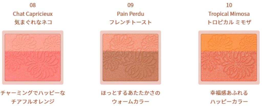 | チークランキング第2位 | 肌に溶け込むようにしっとりとしたパウダーは ムラになりにくく、クリアな発色。繊細なパールのツヤが上品にきらめくよ。 | 詳細を見る | |