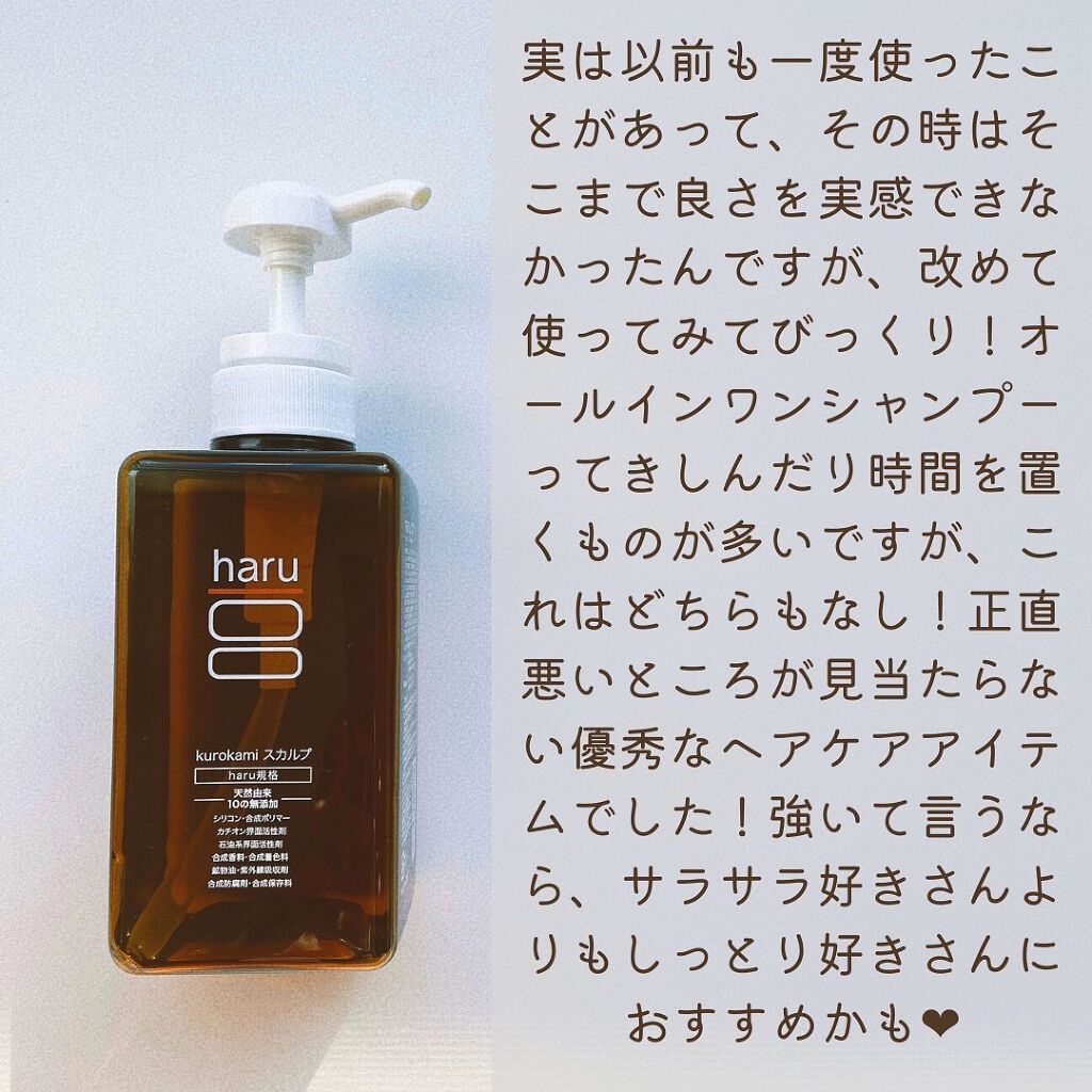 - 髪も頭皮もよろこぶ、100%天然由来のシャンプー。haruのシャンプーは、開発者の経験から生まれました。洗うだけでハリ・コシ・ツヤに自信がでる。フケやかゆみ、ニオイや紫外線ダメージが気になる方にも手軽なケアを。悩みやくらしの変化にもよりそって、変わらず長く続けられるよう、シャンプーに美容成分をたっぷり詰め込みました。