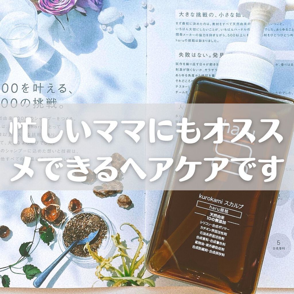 harukurokamiスカルプharu様のSNSキャンペーンにていただきました♡元気な髪と頭皮を育む素材を詰め込んだ100%天然由来のシャンプー✨早速使ってみました🙌泡立ちは優しめで、普段使ってるシャンプーに比べると物足りなさを感じてしまう...