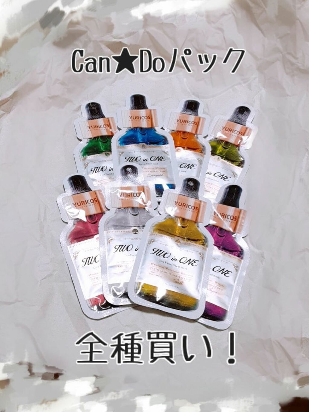 100均の可愛いパケのパック🩷YURICO52in1シカフェイシャルシートマスクグリーンティーを購入してみた!パケが可愛くて、まず見た目に惹かれるよね〜でも肝心なのは仕上がり!袋に液は残ってないけど、シート自体がヒタヒタ♡柔らかいシートが顔に...