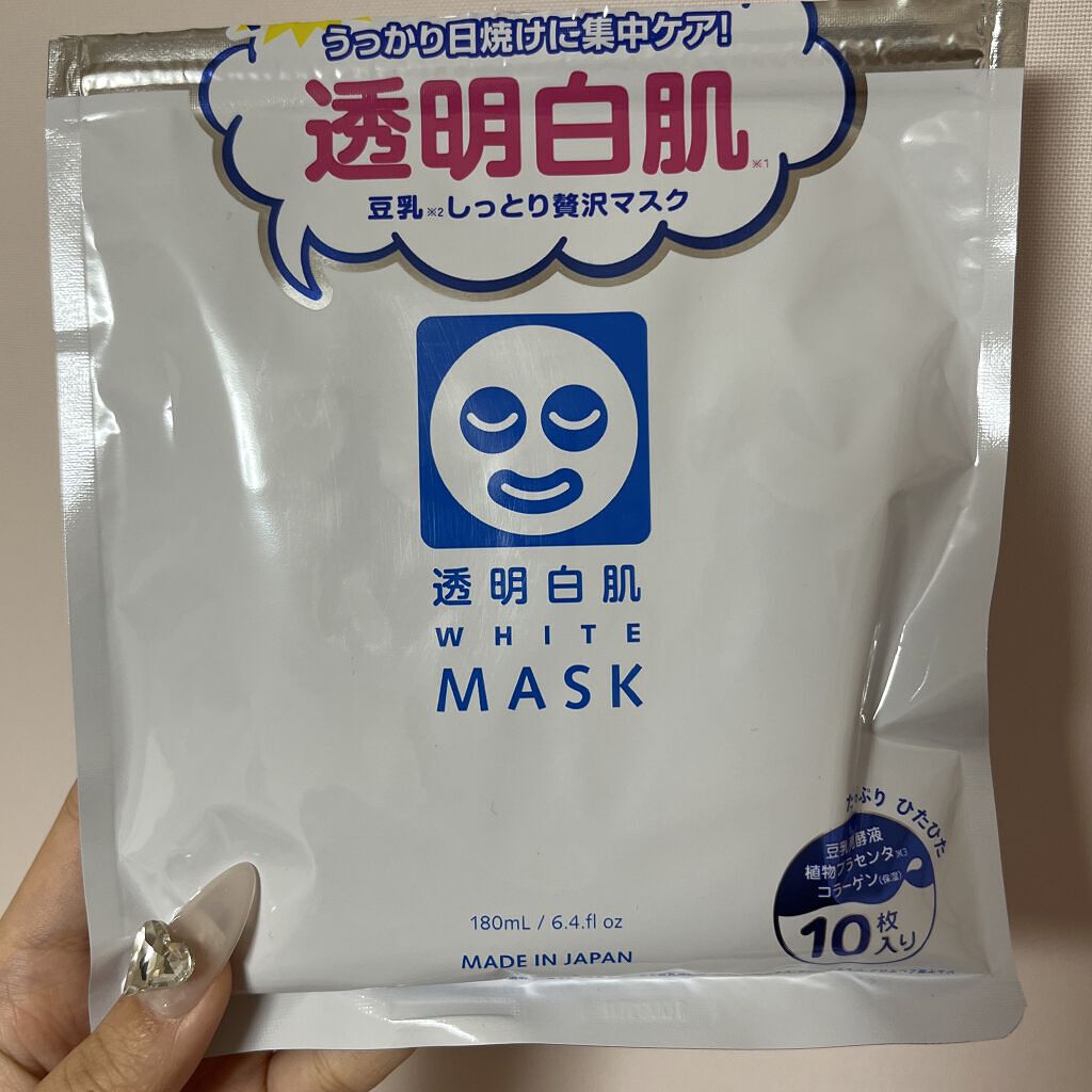 - <ホワイトマスクN> 水、グリセリン、BG、エタノール、ヒアルロン酸Na、加水分解コラーゲン、豆乳発酵液、クズ根エキス、クロレラエキス、アロエベラ葉エキス、ユキノシタエキス、ボタンエキス、ダイズ種子エキス、クエン酸、クエン酸Na、キサンタンガム、(スチレン/VP)コポリマー、ポリソルベート80、メチルパラベン、フェノキシエタノール