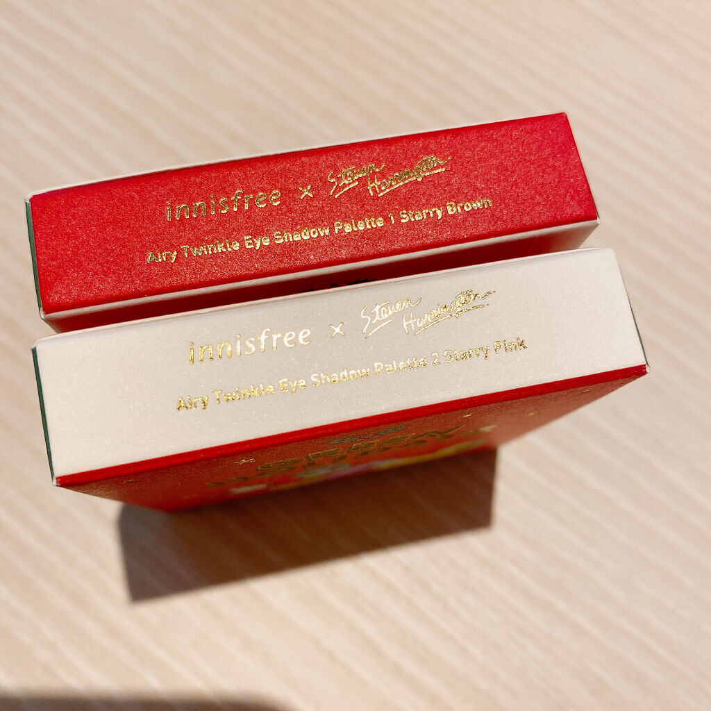 🌟備忘録innisfree エアリートゥインクルアイパレット2021GreenHolidaysEdition スターリーブラウン○色明るめの赤みブラウン締め色がないからアイライン必須💫○ラメ右上は赤色ベースに黄色の小粒ラメ。使いやすくて可愛い...