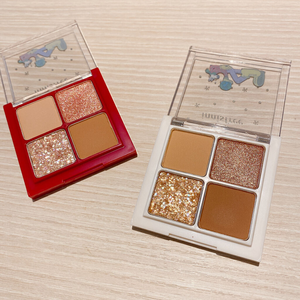 - マット・シマー・グリッターの異なる質感の組み合わせで理想の目元に仕上げるアイシャドウパレット 1.理想の目元を叶える4色アイパレット マット、シマー、大粒グリッターの異なる質感のアイシャドウパレット。溶け込むようになじむ4色の組み合わせが毎日メイクから華やかなホリデーメイクまでなりたい印象に合わせて理想の目元を演出します。 2.空気のように軽やかなエアリータッチ キメ細かい粒子が粉飛びせず、目元にピタッと密着します。ひと塗りでスッと伸び、長時間キープします。 3.Steven Harringtonの限定パッケージ&限定色 ポップで遊び心のある「Steven Harrington」の限定デザインのパッケージ。今しか手に入らないスペシャルホリデー限定色とパッケージを逃さないで!
