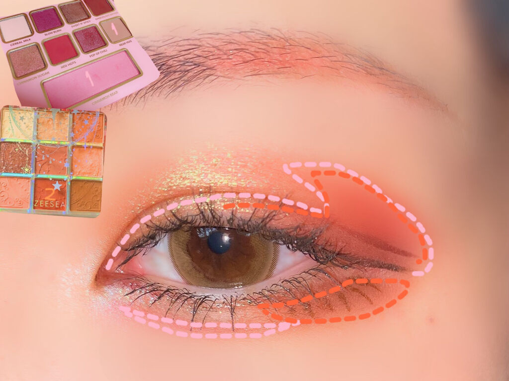 囲み目たぬき顔アイメイク○ヴィセアヴァンシングルアイカラー023REDBRICK目の周りを囲む。○リンメルプリズムクリームアイカラー016目尻側を囲む。(濃いめ)アイライナーを少し垂れ目気味にひく。○theSAEMカバーパーフェクトチップコン...