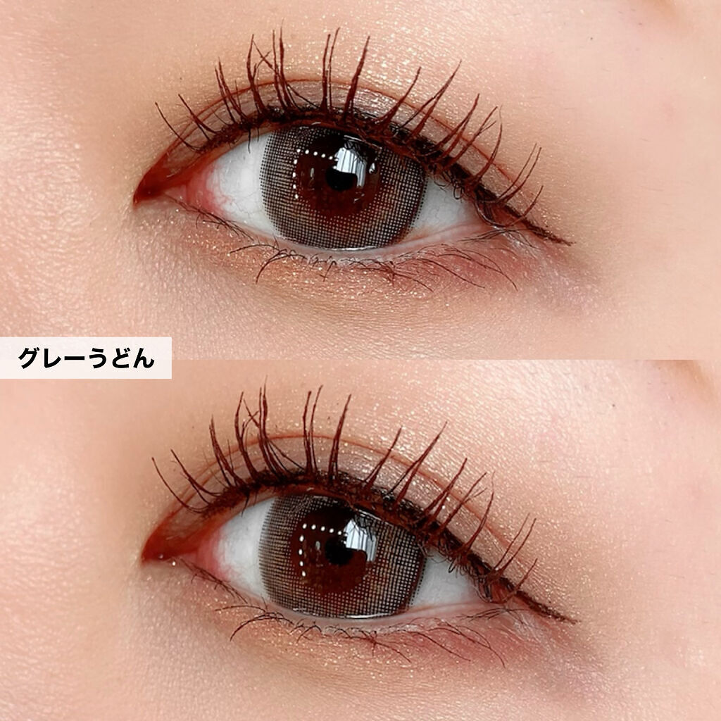 大好きなメイメから1年ぶりに新食カラコンが登場😭💗 幸せホルモン爆アゲの甘めレンズ! 超自然に立体感を出してくれる柔らかブラウンカラコン💛 フチはないけど全体的にほんわりしてるから優しい目にしてくれる✨ 非対称の細フチでつくるしゅわっとブルーグレーレンズ💧🩶 小さめだけど存在感ハンパない💥