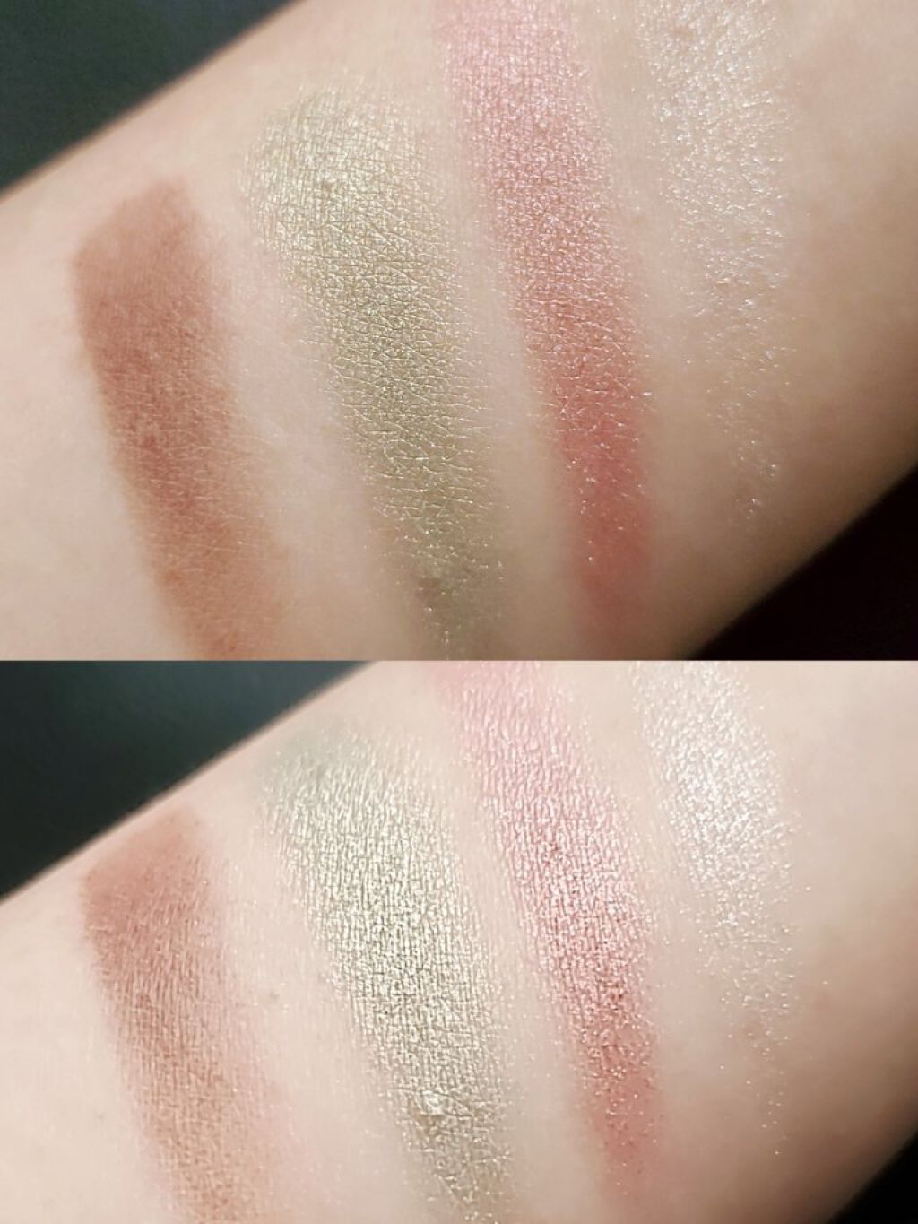 可愛い色味で、こういうカラーバランスのパレットは持っていなかったので見た目で選びました。 ほんわかした可愛らしいピンクとオレンジに、シルバーのニュアンスをプラス。うるっとした目元を演出する抜け感パレット。