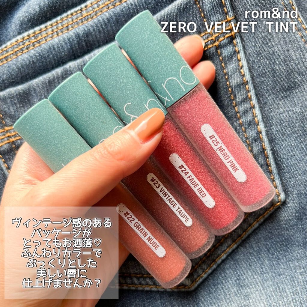 【Rom&ndブルベ大優勝青みリップ🥀】-——— Rom&nd BlurFudgeTint ¥1,199(Qoo10公式) -——— ティッシュオフしても 落ちにくいマットティント☽꙳⋆ ふわっと軽やかで高発色、マットなのにパサつかず唇にし...