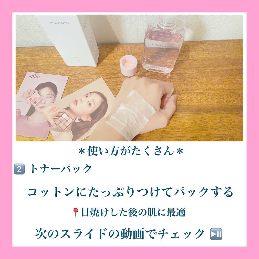 ティーツリーや、シカエキスを配合でニキビ、肌荒れ悩みをケアしてくれるトナー🩷 ピンク色は自然成分「ビタミンB12」本来の色だそう✨ サラサラテクスチャーで、さっぱりした使い心地✨