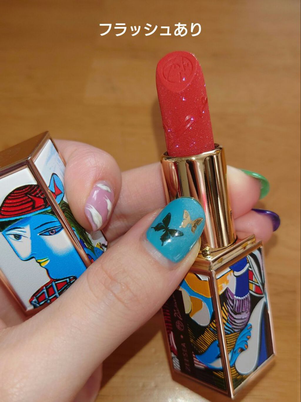 •.\ピカソリップ/.•ZEESEA×PabloPicassoLipstick917真夜中の花パッケージの可愛さもさることながら、リップスティックに吹き付けてあるラメと刻印もまためちゃくちゃ可愛い、、、カラーはトマト🍅みたいな赤で、鮮やかなレ...