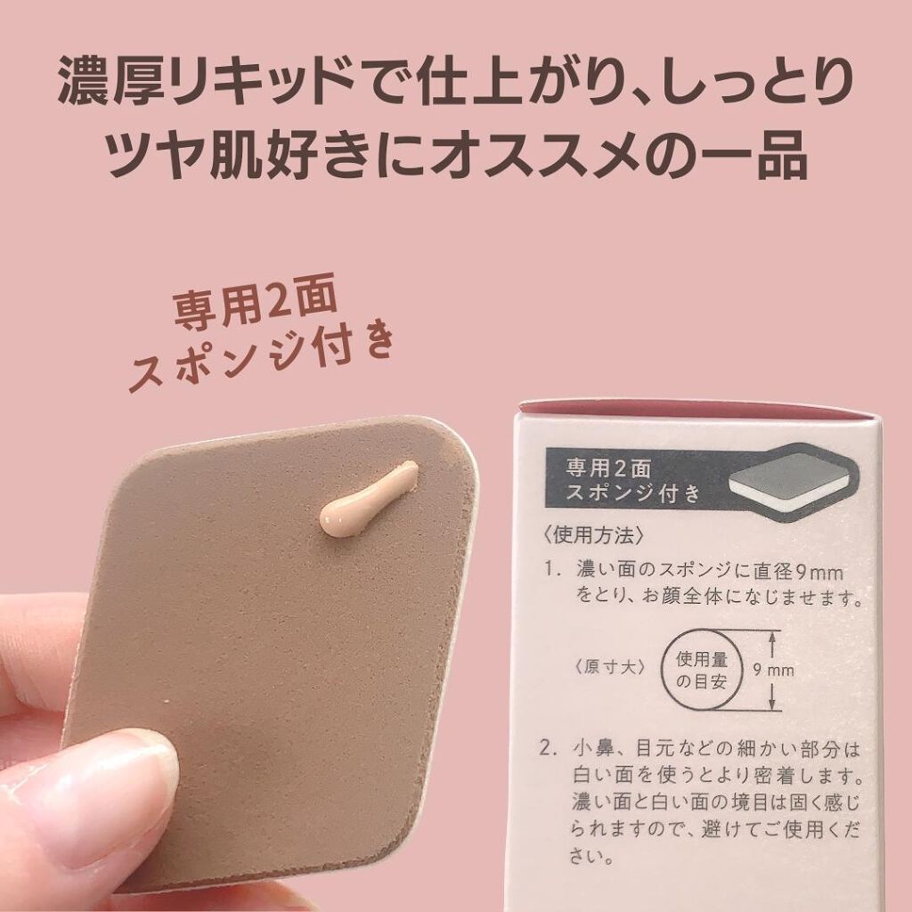 | リキッドファンデーションランキング第100位 | 少量でもしっかり伸びて、 ほんのりつやのある仕上がり。 厚塗り感が少ないのに気になる部分はカバーできて好き! | 詳細を見る |