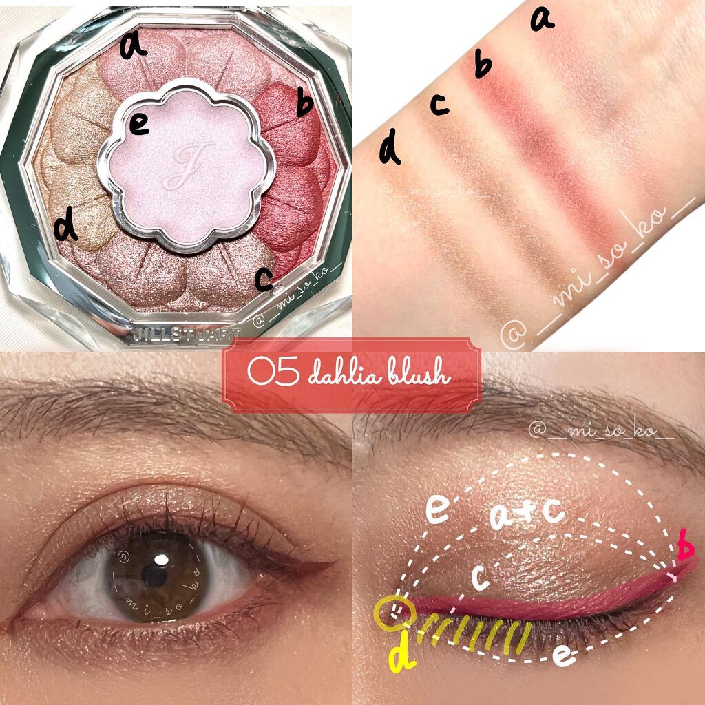 5色で叶える、陽だまり宿す“透かし花びらアイ”。 可憐なカラーシンフォニーを楽しむアイカラーパレット。 柔らかいカラーのものもあればしっかりと色づくカラーもあって、同じジルでもすっごく印象が変わるなと思いました♡ イエベさん…02,03,06 ブルベさん…04,07 誰でもOK…01,05 イエベ、ブルベとか一丁前に振り分けたけど個人的には違和感なく全部使えるからガツガツ使いたいなって感じです👏🎀 そして何と言ってもジルといえばあのお花の香りですよね!! 柔らかい粉質をぎゅっとプレスしたような印象のシャドウ。 クリームも嫌なベタつく感じがなくて上から乗せるパウダーがずっと馴染んで発色するような質感。 公式オンラインでは24日から予約が始まってます💋 発売は2022年1月7日から😍✨ めっちゃ可愛いので要チェックですよー!!