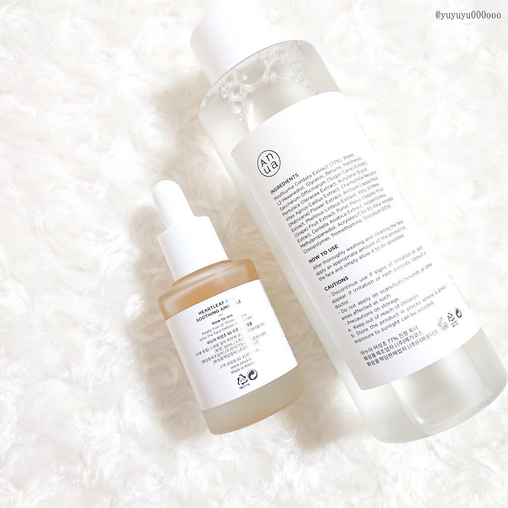 今回紹介するのは、Anuaのドクダミ77% スージングトナーとドクダミ80%スージングアンプルです! さらっとしておりべたつかないので初心者の方でも使いやすいです! これからの時期には保湿力が足りないかも?とは思いますが、乳液の後クリームを塗れば大丈夫かも!