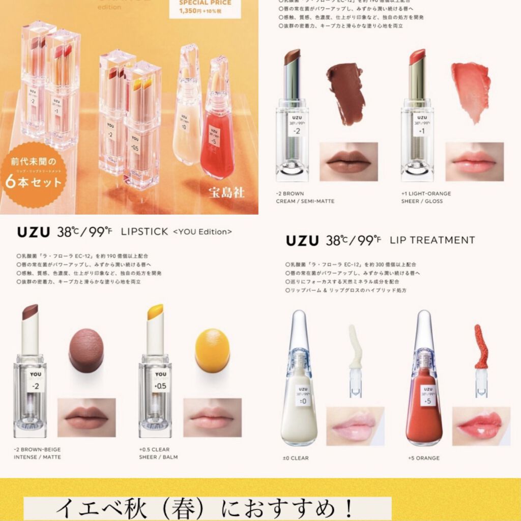 UZU BY FLOWFUSHIORANGE edition 予約していたUZUのムック本が届きました🥳現品サイズ6本で税込¥1485は本当に安すぎます…。UZUのリップ使ったことなかったのですが、1本の値段以下で6本買えるということで直ぐに予約しました。PINKが人気だったみたいですが、私はブラウンやオレンジ系のリップが欲しかったのでORANGEにしました。まだ使えてないので、また使用したレビューは後日投稿します。