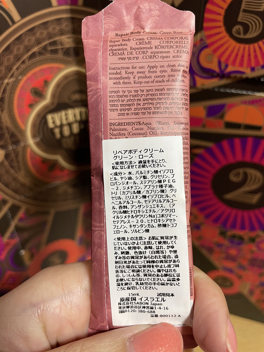 - <数量限定>SABON Holiday Collection 2021 ホリデーが待ち遠しくなる、SABON の魅力をぎゅっと詰め込んだアドベントカレンダー。 まるでアートピースのようなギフトボックスに入っているのは、全24 種の人気アイテムの数々。 毎日ひとつずつ扉を開けると、香り豊かなボディケアやヘアケア、フェイスケアアイテム、フレグランスが次々と登場し、そのたびに驚きと喜びが溢れ出します。 一年を締めくくる特別なシーズンに、感謝や愛情を込めて、特別な方や自分への贈り物に。 内容 ギフトボックス内 【ボディケア 】 シャワーオイル パチュリ ・ ラベンダー ・ バニラ 50 mL シャワーオイル デリケート ・ ジャスミン 50 mL シャワーオイル グリーン ・ ローズ 50 mL ボディスクラブ パチュリ ・ ラベンダー ・ バニラ 60 g ボディスクラブ シトラス ・ ブロッサム 60 g ボディローション デリケート ・ ジャスミン 50 mL シルキーボディミルク ホワイトティー 50 mL リペアボディクリーム グリーン ・ ローズ 15 mL フットクリーム 30 mL ワイプス リフレッシング (現品) ソープバー デリケート ・ ジャスミン 1個 ソープバー グリーン ・ ローズ 1個 【ヘアケア 】 ローシャンプー グリーン ・ ローズ 30 mL シャンプー グリーン ・ ローズ 50 mL 【フェイスケア 】 フェイスポリッシャー リフレッシング 15 mL フェイスポリッシャー リラクシング 15 mL クレンジングオイル 3 mL デッドシーマスク 30 mL 【ハンドケア 】 ※香りが変更になる可能性があります 。 ハンドクリーム パチュリ ・ ラベンダー ・ バニラ 30 mL (現品) ハンドクリーム ムスク 30mL(現品) ハンドクリーム ホワイトティー 10 mL ハンドクリーム ローズティー 10 mL 【フレグランス 】 オー ドゥ サボン パチュリ ・ ラベンダー ・ バニラ 8 mL オー ドゥ サボン グリーン ・ ローズ 8 mL