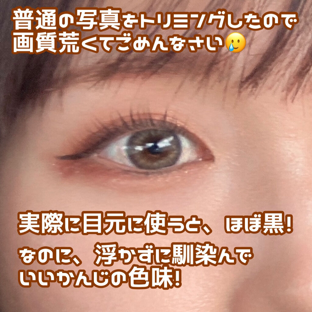 高発色がかなりいい!インクの密度も高い。 ブラウンすきずブラックすぎない程よい垢抜け感のあるカラーも素敵です💓 滲みにくく汗や摩擦に強いので朝から晩まで直しなしでも続く高発色。 まつげや瞼に優しいケア成分も配合してるみたいなので、目元に優しいアイテムです。