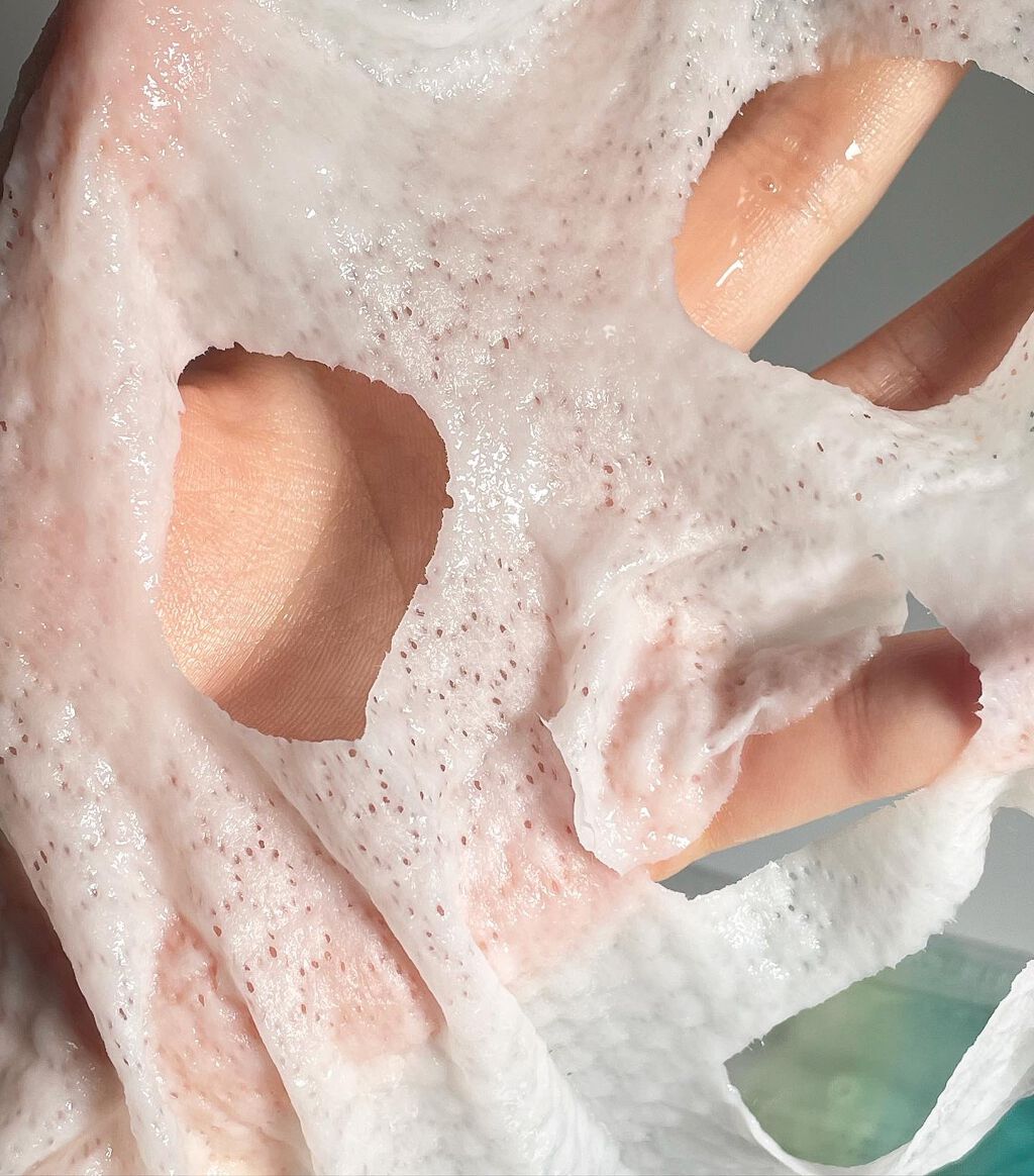 木から得られた天然植物性素材でできており、肌に優しいだけでなく環境にも優しいシートです。 水分の吸収が最適化するように、厚さを薄く細かくして使用時に優れた密着力と柔らかさを感じることができます✨ 使用してみて、マスクの薄さ驚きました! 密着力が本当に良くて鼻や凹凸部分にも綺麗にフィットしてくれます。 開けた時に美容液は少し少なめかな?と思ったんですが、ちょうどいい量で20分くらいつけるとしっかり美容液が肌に浸透していました! 鎮静効果と保湿効果をしっかりと感じることができました👏 お手頃価格なのに使用感も良くてかなり気に入りました〜💛