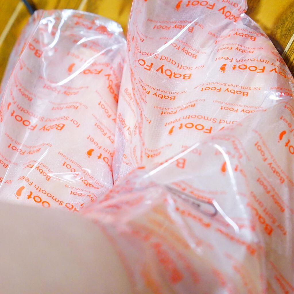 簡単ステップのフットケア「ベビーフット」は履いて・浸して・流すだけでOKなの◎ 使ってから数日経つと…マッジで壮観なの😂 歩いたりしたときの摩擦で浮いた角質が剥がれてくるから、靴下を履いておくとイイ感じだよー♪ カチカチになったところとか、爪周りの手入れしにくい部分もぜーんぶまとめてケアできてとっても便利だよ✨️