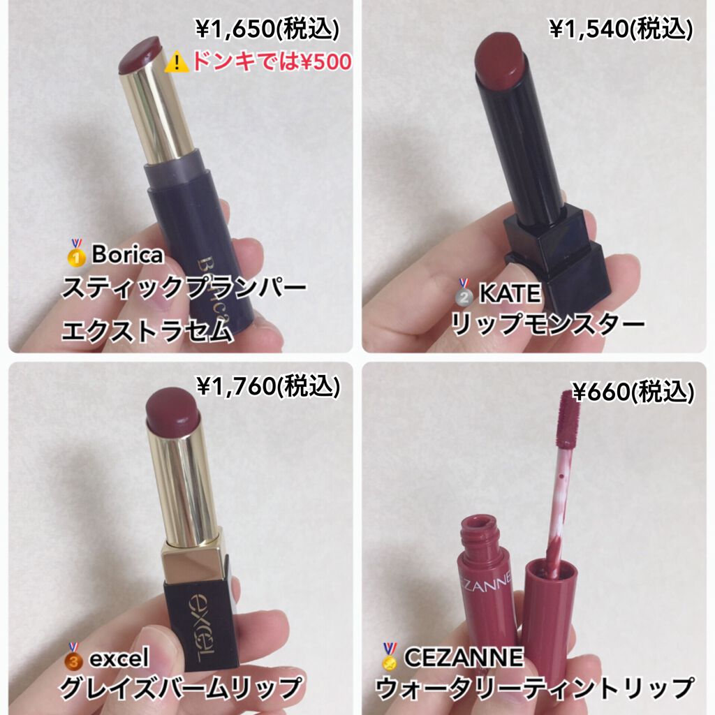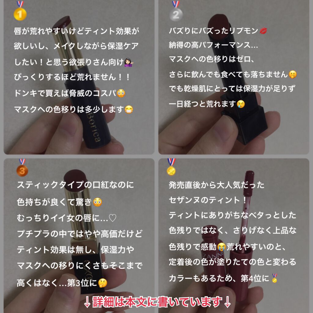 | 発色がよく、プルプルつやつやな感じ✌️ 色持ちもかなり良かったので飲み会リップとかにも良さそうです◎ | 詳細を見る |