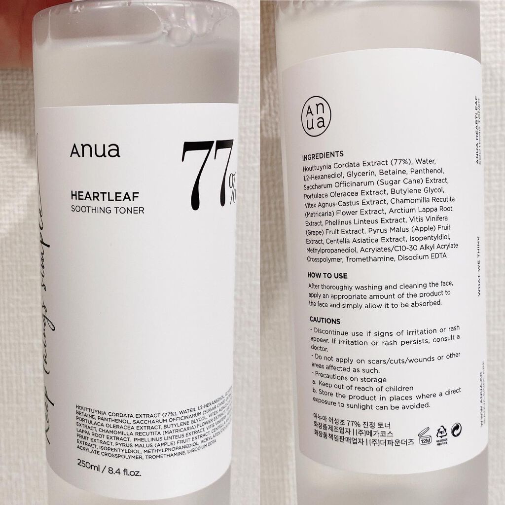 肌質に変化が🥹✨ どちらも鎮静効果抜群のドクダミエキスたっぷりでニキビや肌荒れを抑えてくれる✨ 安心して使える自然由来の肌に優しい成分をたっぷりと詰め込んだ化粧水♡ トナーだけだと保湿力が気になりますがアンプルと合わせて使う事でしっかり保湿でき水分バランスを整えてくれる💗
