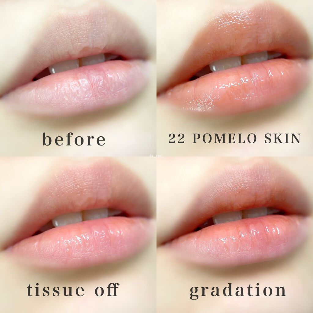 - みずみずしいフルーツがきらめくようなシロップティント ①なめらかで潤いのあるリップを実現 ②果汁のシロップのようなカラー感 ③時間が経つにつれ凸凹を滑らかに密着しボリューム感を演出