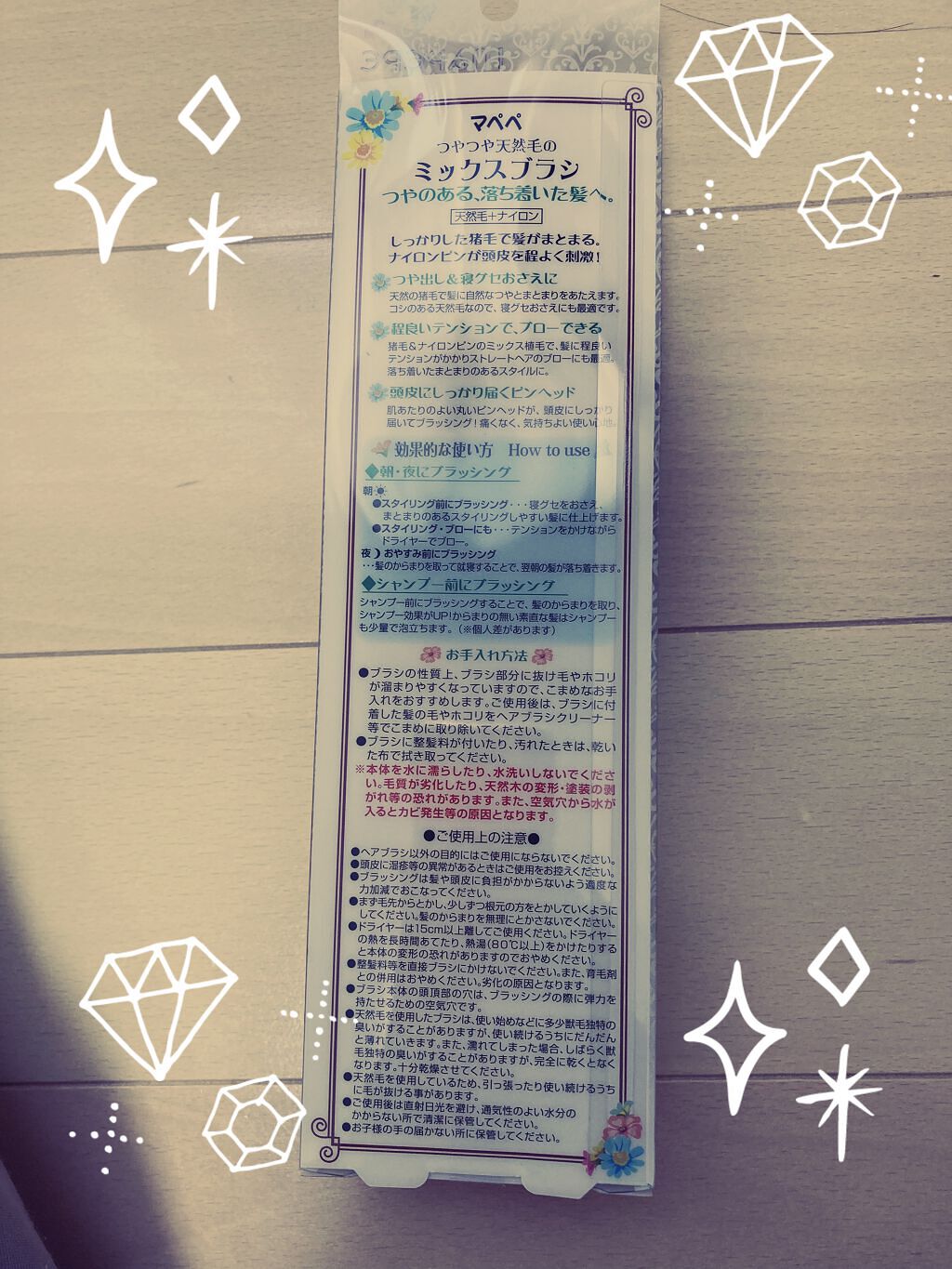 - 材質(素材・原材料) [柄]天然木 [クッション]TPEE [毛]猪毛 [ピン]ナイロン