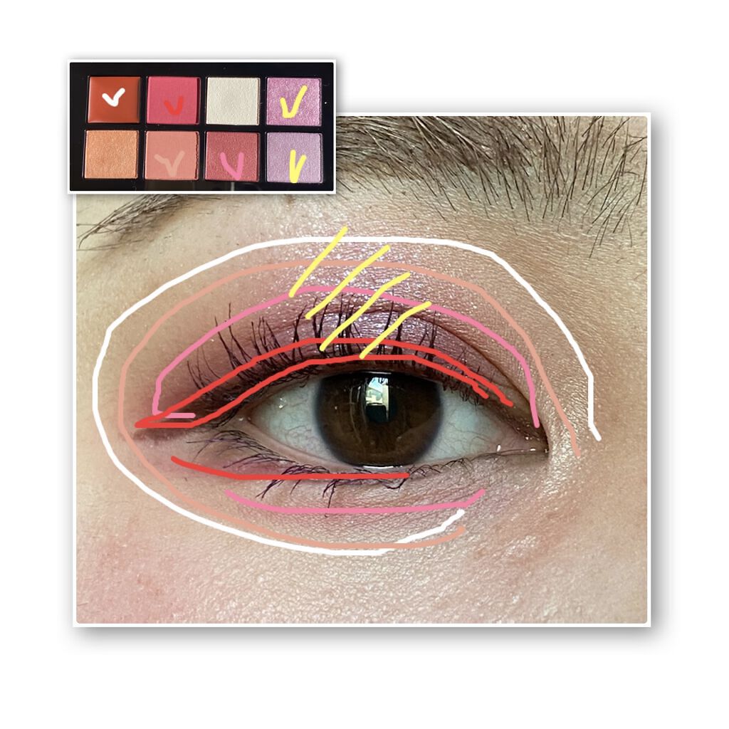 #今日のアイメイク【使った商品】ADDICTIONコンパクトアディクション“エターナルインピンク”101LoveandSensitivity限定¥8,580【手順】1.1のカラーを黒目の上下に乗せます2.2のカラーを目尻に丸く入れます3.3の...