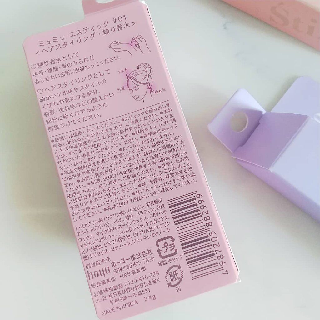 - 練り香水×まとめ髪・アホ毛スティック として使える リップ型マルチスティック POINT①まとめ髪スティックとして使える。 アホ毛、前髪、おくれ毛をしっかりまとめて弱点知らずのヘアスタイルをいつでもキープ。 しっかり直せるのにベタベタしない。 POINT②練り香水としてふんわり香る。 好きな香りをいつでもどこでも付け直せる。うるおい成分たっぷり。肌にも優しい。 香りはインフルエンサー100人が厳選した4種の香り。 POINT③コスメ感覚で持ち運べる。 リップ型だからポーチに入れても邪魔しない。ポーチの新たなレギュラーアイテムに。