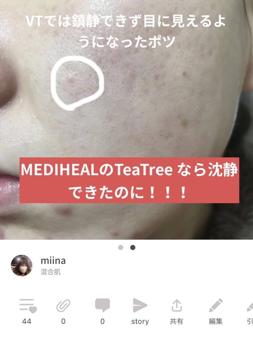 私のニキビは、CICAよりTeatreeです。 もしCICAが効かないよ😢っていう人は Tea treeを是非試してみてください。 私の頬ニキビは、早期のteatree マスクで鎮静することが多いです!!! そして肌に合う化粧品を使いながら 睡眠運動食事をベストに維持しないと 結局治らないこともあると思います😢 自分に合うケアを見つけて健康でいることが 必須です。