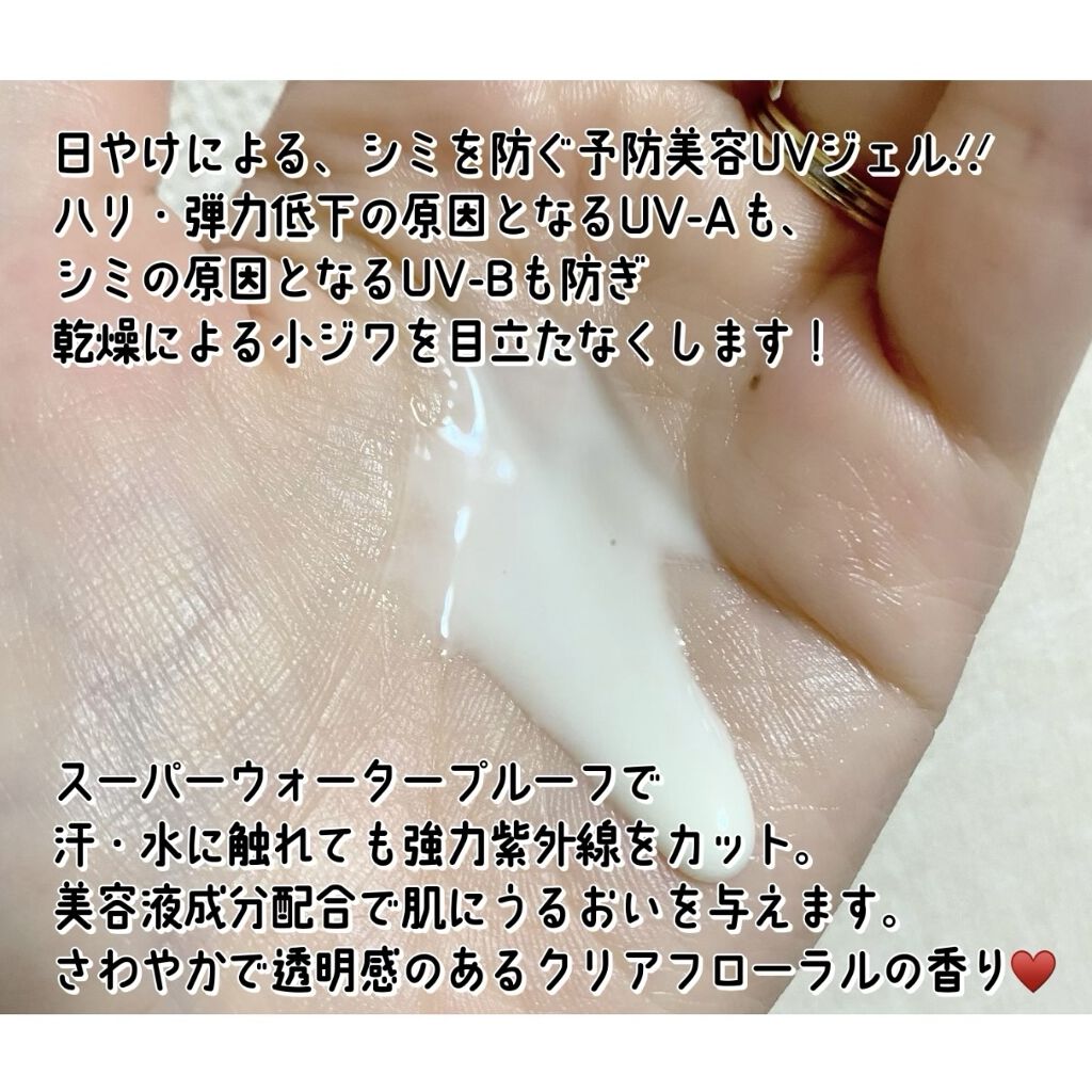 | 日焼け止め・UVケアランキング第25位 | ジェルなので伸びが良く、白くならないです。 馴染むとサラっとしてくれます♪ | 詳細を見る | |