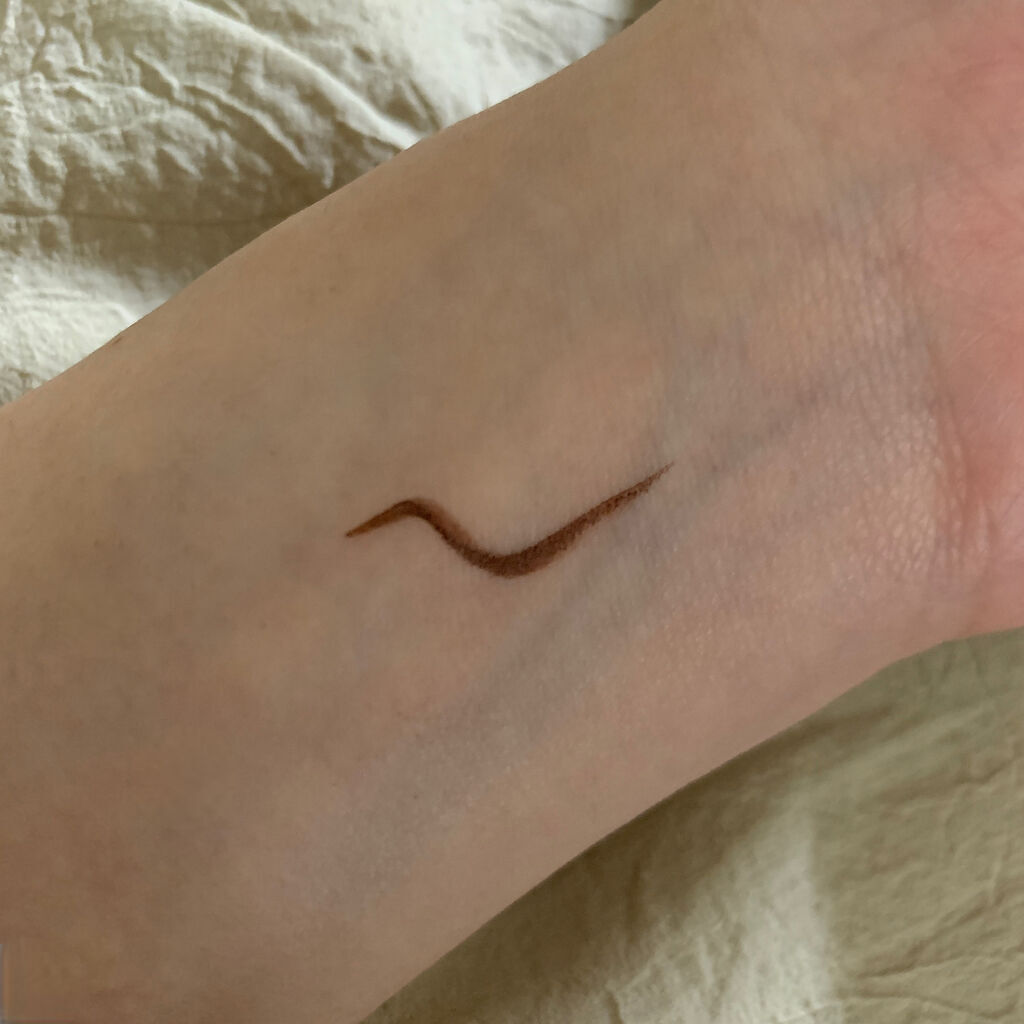 高発色がかなりいい!インクの密度も高い。 ブラウンすきずブラックすぎない程よい垢抜け感のあるカラーも素敵です💓 滲みにくく汗や摩擦に強いので朝から晩まで直しなしでも続く高発色。 まつげや瞼に優しいケア成分も配合してるみたいなので、目元に優しいアイテムです。