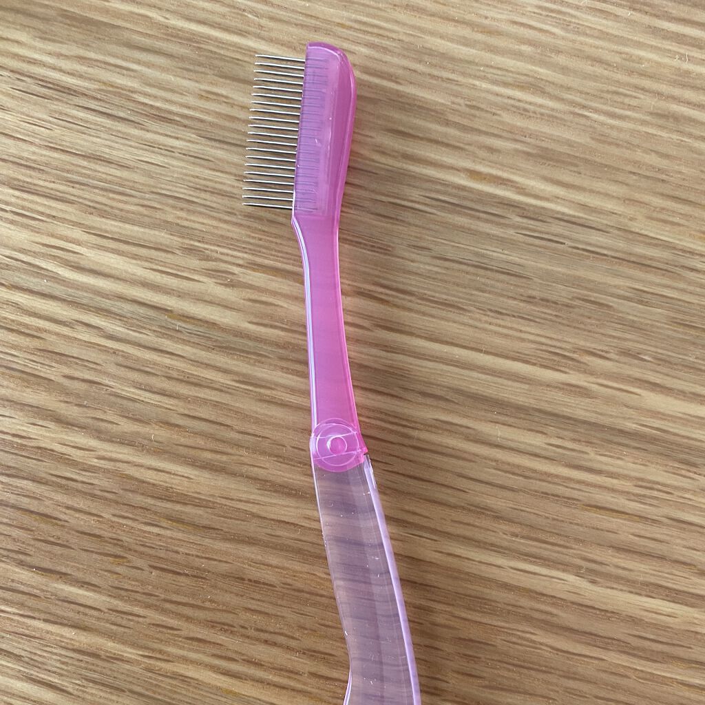 チャスティマスカラコームメタルNペールPLIPSショッピングにて¥770で購入二代目です✨今回は少し目が粗いタイプにしました!まつ毛が通しやすいですメタルコームがしっかりとまつ毛をセパレートに仕上げます🤍コンパクトにたためて便利✨まつ毛をとく...