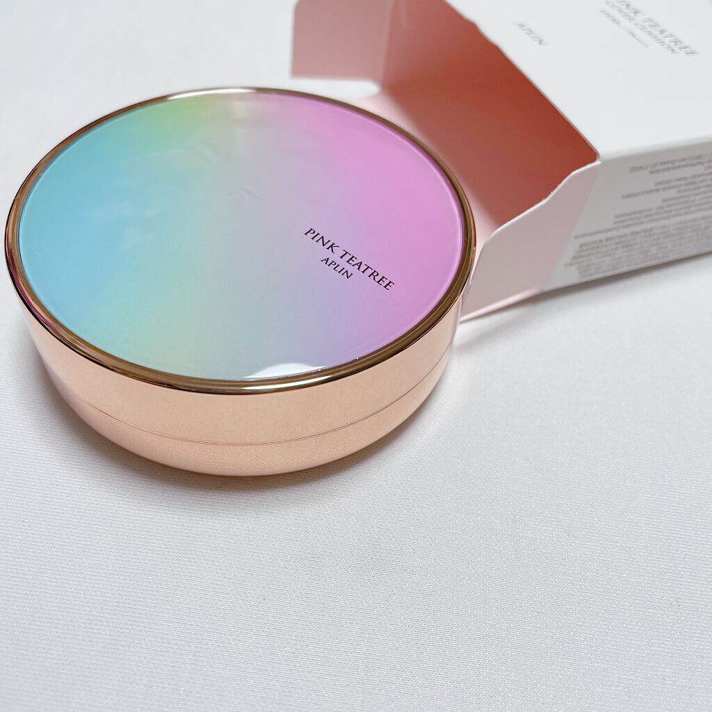 APLIN ピンクティーツリーカバークッション 21号ライトベージュ 2,490円(税込) 少量でよく伸びてハイカバー! 赤みやくすみをしっかりカバ一できるのに、厚塗り感のないなめらかな仕上がり♡ ハイカバーなのにナチュラルなツヤ感とサラッとしつつ、乾燥崩れしにくい仕上がりに感動します!!