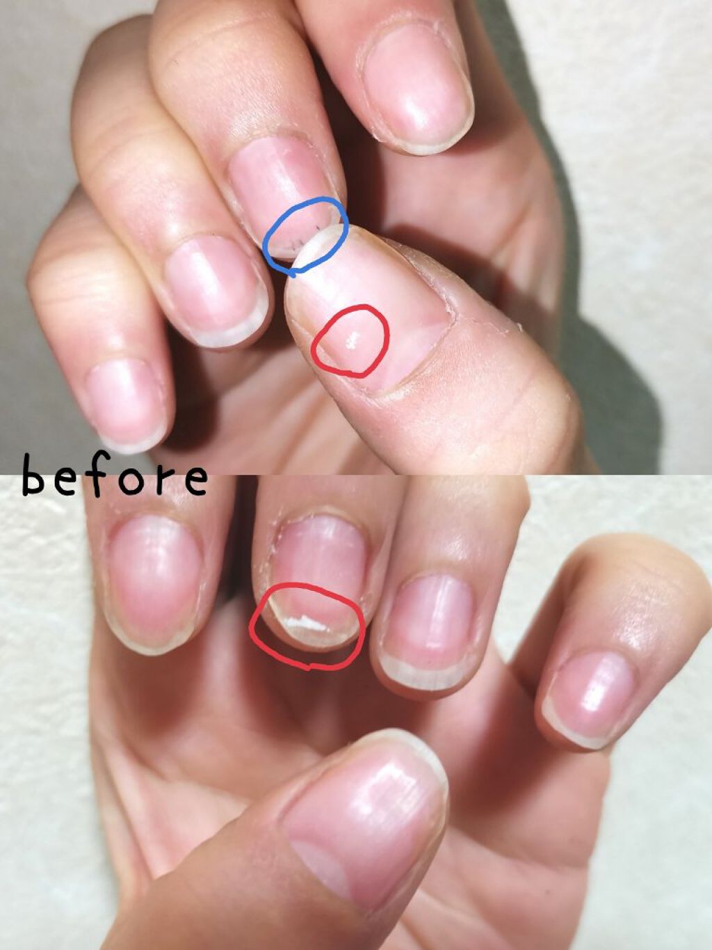 残すフリーエッジをネイルベッドギリギリまで切ると、ハイポニキウムも一緒に切ってしまいます。爪が長いのが嫌な人、校則、職業柄的に爪を短くしなきゃいけない方もせめてギリギリではなく少しは白い部分を残すようにしてみてください!爪に刺激を与えるこれはどういうことかというと、爪で缶を開けたりシールを剥がす時に爪でカリカリしたりすると爪の刺激になってしまいます。爪に刺激を与えるとネイルベッドが伸びにくくなってしまいます。缶を指の腹で開けてみたり少し工夫をすればいいと思います^ ^爪の中に入ったゴミを爪で取る中のゴミ、気になりますよね(^_^;)でも爪でグッと押してしまうと、ハイポニキウムをも押してしまっている=ネイルベッドを縮めてると言うことになります。私も気になるのですが、手を洗うと取れたりするので気になったら手を洗うようにして衛生的にも一石二鳥!と思って我慢してます笑笑保湿これがいっっっっっっちばん大切です。逆に言えば、忙しくてこんなできない^^;って方もネイルベッド伸ばしたければ