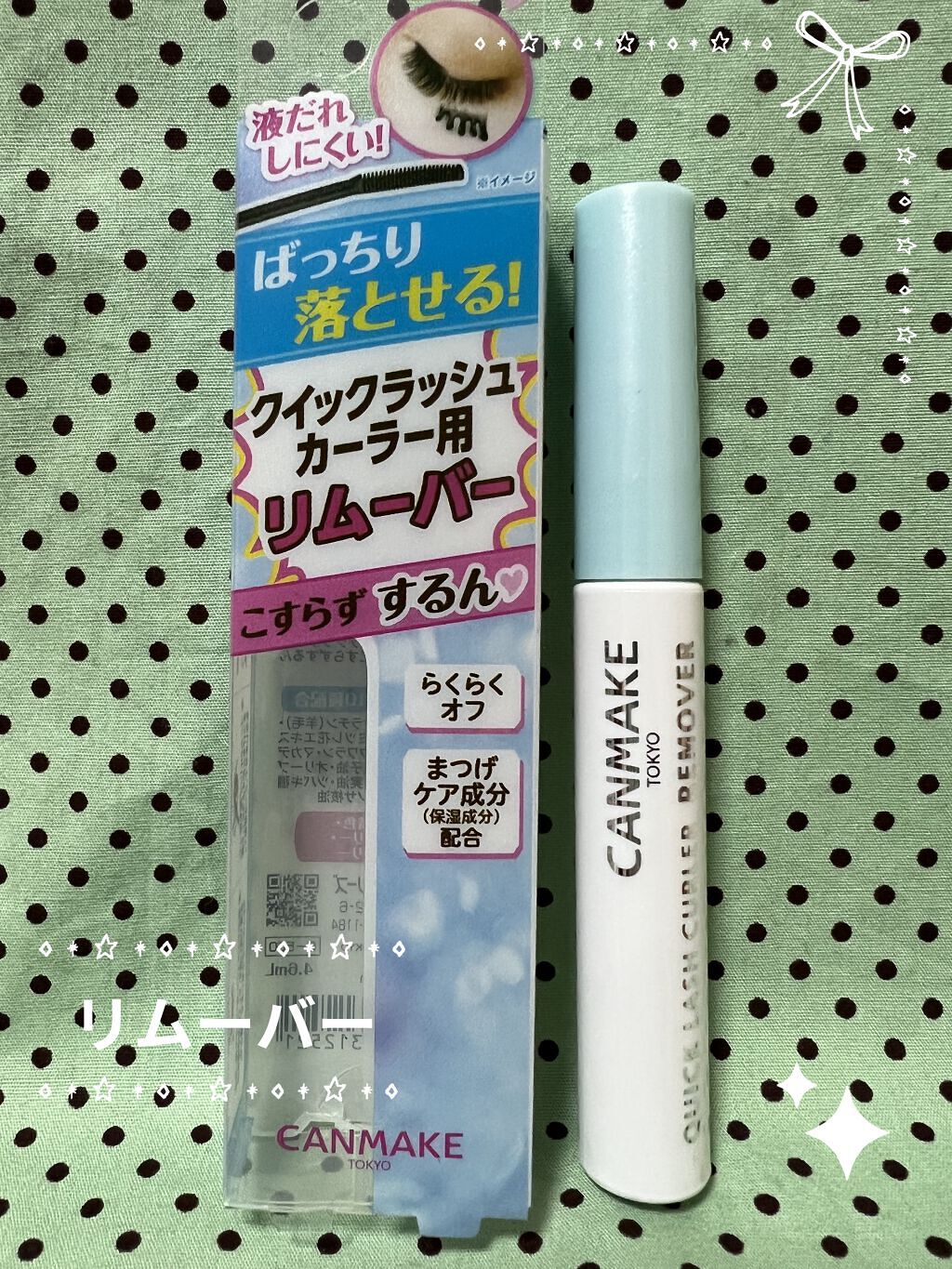 - こすらずするんと落とせる! カールキープの強いクイックラッシュカーラーを落とす用のリムーバー。 メイクになじみやすいクレンジングオイル処方により、こすらずするんとオフできます。 クイックラッシュカーラー全種はもちろん、 他のウォータープルーフ(油性タイプ)のマスカラにも使用できます。 旧コームに比べてコームの間隔が広くなったため、 まつげに引っかからずに塗りやすい♪ また、旧処方からオイルゲル化剤を2種類追加し 「塗る時やメイクとなじませる時はするする~と伸びるのに、 まつげに塗った後はピタッ!と留まって垂れにくい」を叶えました!