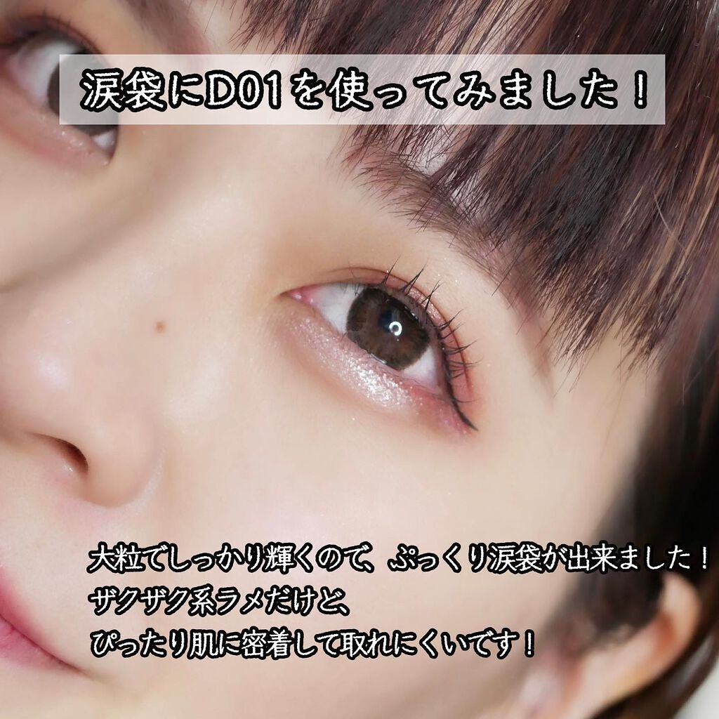 - <D01 クリスタル> シクロペンタシロキサン、トリメチルシロキシケイ酸、ホウケイ酸(Ca/Al)、メチルトリメチコン、水添野菜油、シリカ、ポリエチレン、セレシン、パラフィン、ステアリン酸亜鉛、合成フルオロフロゴパイト、ジメチコン、ホウケイ酸(Ca/チタン)、酸化スズ、マイカ、酸化チタン、酸化鉄、銀 <D02 ステラ> シクロペンタシロキサン、トリメチルシロキシケイ酸、メチルトリメチコン、ホウケイ酸(Ca/Al)、水添野菜油、シリカ、ポリエチレン、マイカ、合成フルオロフロゴパイト、ホウケイ酸(Ca/チタン)、セレシン、ホウケイ酸(Ca/Na)、パラフィン、ステアリン酸亜鉛、ジメチコン、酸化スズ、酸化チタン、酸化鉄、カルミン <D03 フェアリー> シクロペンタシロキサン、トリメチルシロキシケイ酸、メチルトリメチコン、ホウケイ酸(Ca/Al)、シリカ、水添野菜油、ポリエチレン、マイカ、合成フルオロフロゴパイト、セレシン、ホウケイ酸(Ca/Na)、パラフィン、ステアリン酸亜鉛、ジメチコン、酸化スズ、トリエトキシカプリリルシラン、酸化鉄、酸化チタン <D04 ペタル> シクロペンタシロキサン、トリメチルシロキシケイ酸、メチルトリメチコン、ホウケイ酸(Ca/Al)、シリカ、マイカ、水添野菜油、ポリエチレン、セレシン、パラフィン、ステアリン酸亜鉛、合成フルオロフロゴパイト、ジメチコン、酸化スズ、トリエトキシカプリリルシラン、酸化鉄、酸化チタン、カルミン <D05 オーロラ> シクロペンタシロキサン、トリメチルシロキシケイ酸、ホウケイ酸(Ca/Al)、メチルトリメチコン、水添野菜油、シリカ、ポリエチレン、マイカ、セレシン、パラフィン、ステアリン酸亜鉛、ジメチコン、酸化スズ、トリエトキシカプリリルシラン、酸化鉄、酸化チタン、カルミン <D06 インフィニティ> シクロペンタシロキサン、トリメチルシロキシケイ酸、メチルトリメチコン、ホウケイ酸(Ca/チタン)、水添野菜油、シリカ、ポリエチレン、ホウケイ酸(Ca/Al)、合成フルオロフロゴパイト、セレシン、パラフィン、ステアリン酸亜鉛、ジメチコン、酸化スズ、マイカ、酸化鉄、酸化チタン、銀