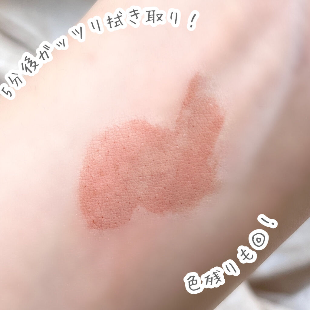 - ツヤ膜でLIPカラーを閉じ込める 塗ってから「5分」でかわいい唇完成♥ツヤがあふれ出るオイルinウォーターティント 水に対して約2倍のオイル成分を配合した「オイルinウォーター処方」 時間経過でツヤ膜がじゅわ~っとあふれ出し、 まるでグロスを重ねたような仕上がりに。みずみずしいツヤ感が持続します。 塗布後、時間経過(※)で色が定着して食べても飲んでも血色長持ち。 (※定着には個人差があります。弊社5分推奨) 高密着で唇に溶け込むように色づきます。 コップやペットボトルへの色移りがしにくくなります。
