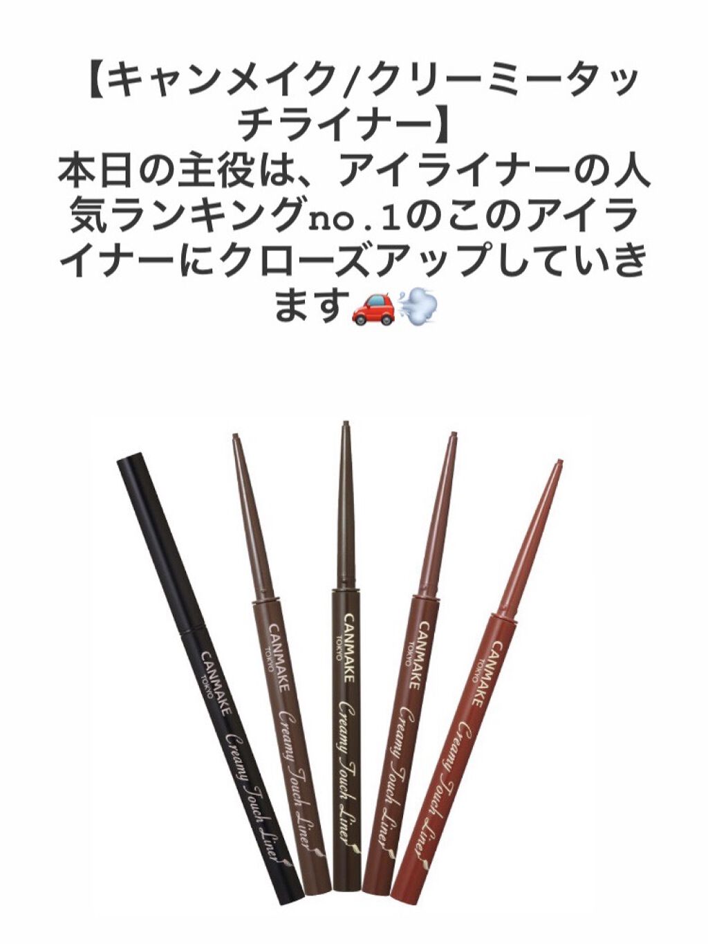 キャンメイククリーミータッチライナー03ダークブラウン¥715うん私には使いこなせなかった😢03番のカラーは良かった。長年リキッドアイライナー派だった私には書きにくく感じた。YouTubeの美容系動画とか見ると絶賛されてて、するする描けるし発...