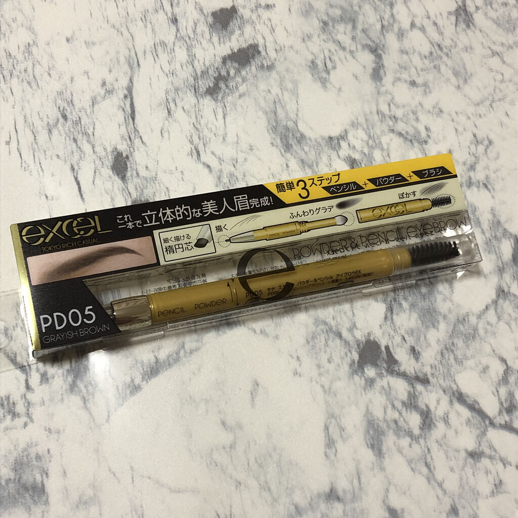 ブラシとペンシルがついた1本3役のアイブロウペンシルexcelパウダー&ペンシル アイブロウEXPD05グレイッシュブラウン🫧使い切りレビュー以前から使用していておそらく3回目のリピート。ブラシの質感とペンシルの描きやすさが気に入っています。...