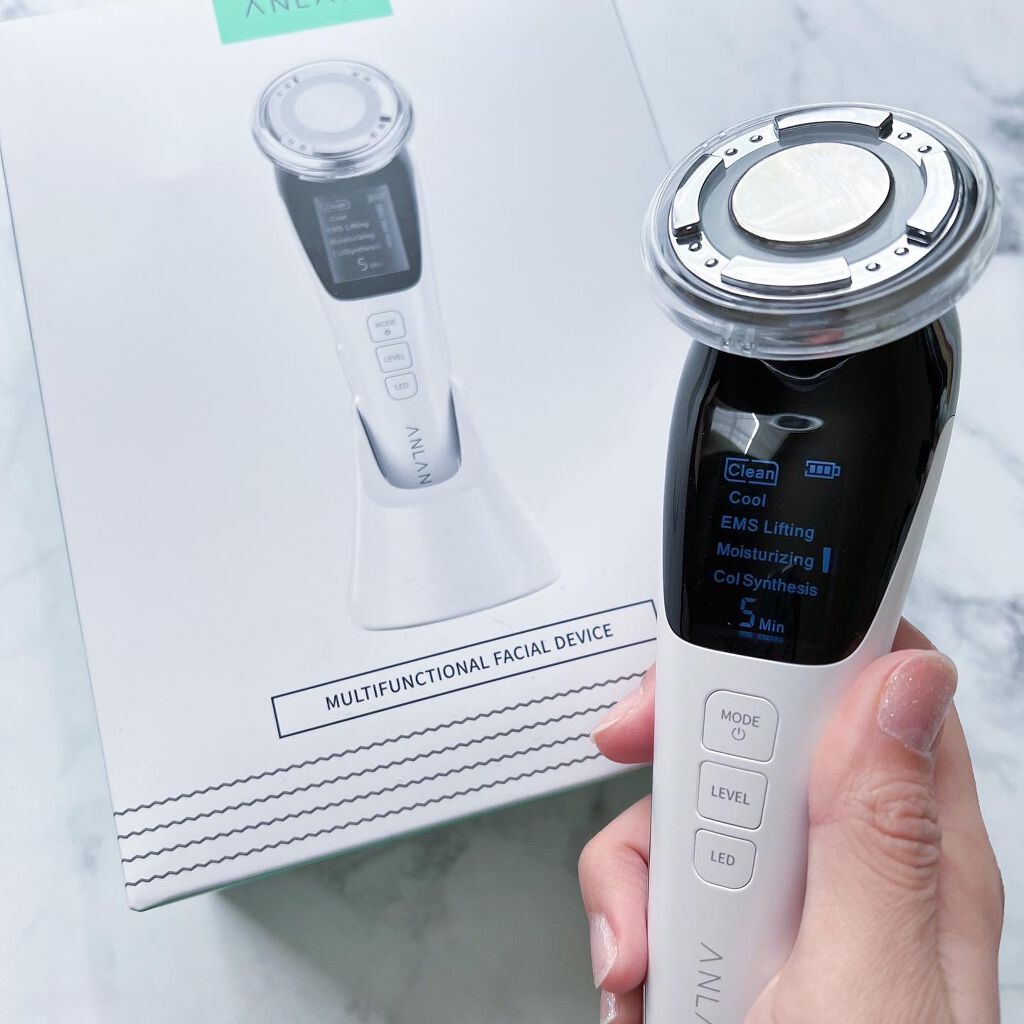 「美人百花」の他、メディアやSNSで多く紹介されているANLANさまの美顔器を使ったよ♡◼️ANLAN温冷美顔器一つで【温熱ケア、冷却ケア、EMS、振動、2色光エステ、イオン導入、イオン導出】モードは次の5つ↓↓(表面の3つのボタンで機能を変...